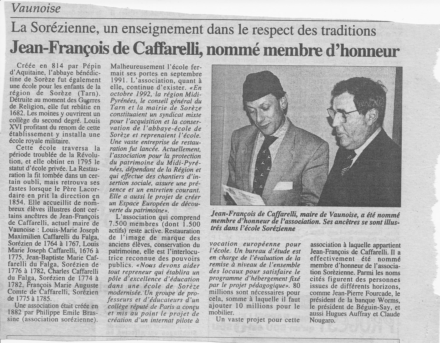 | Jean-François De Caffarelli met un calot de sorézien d'honneur