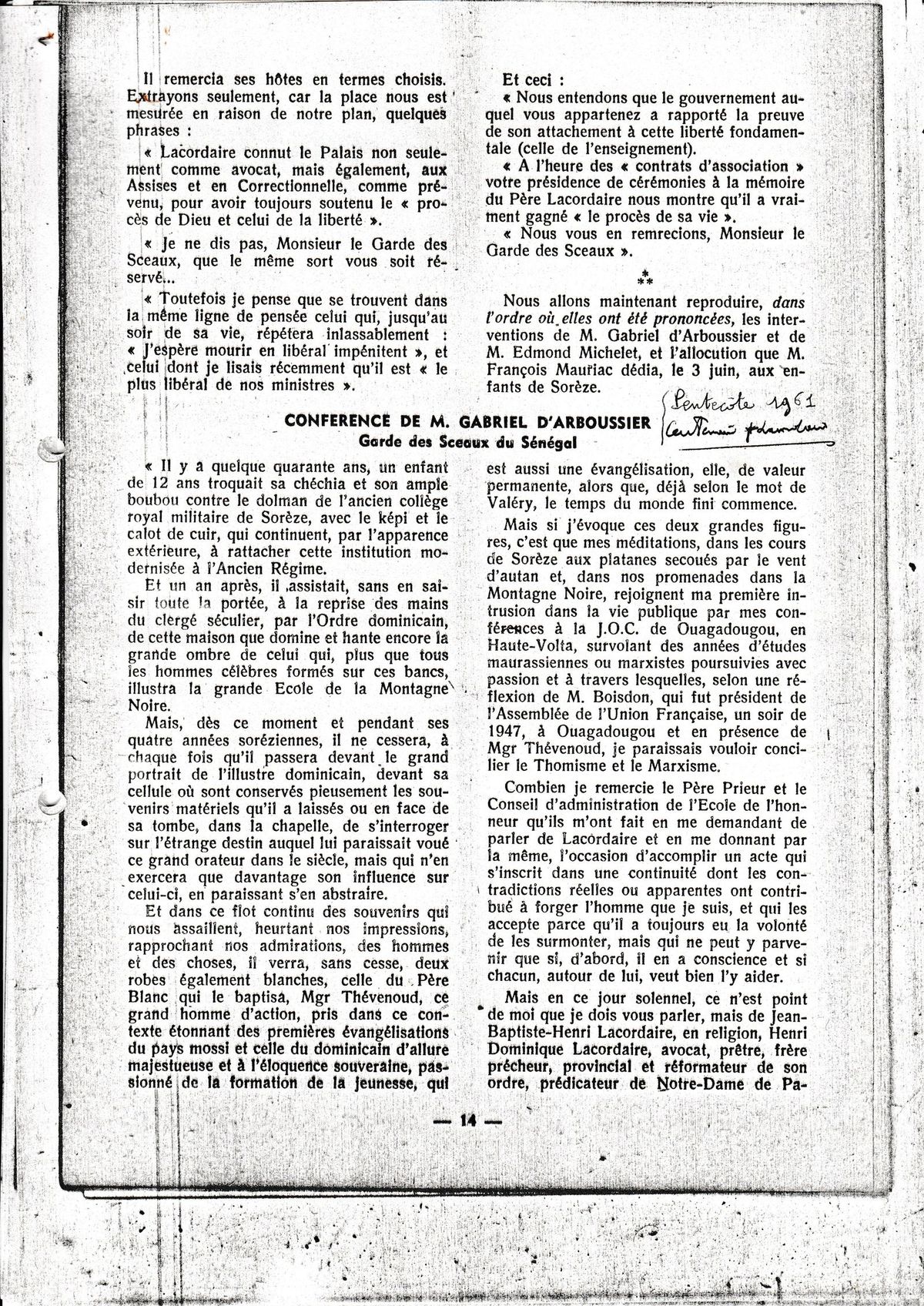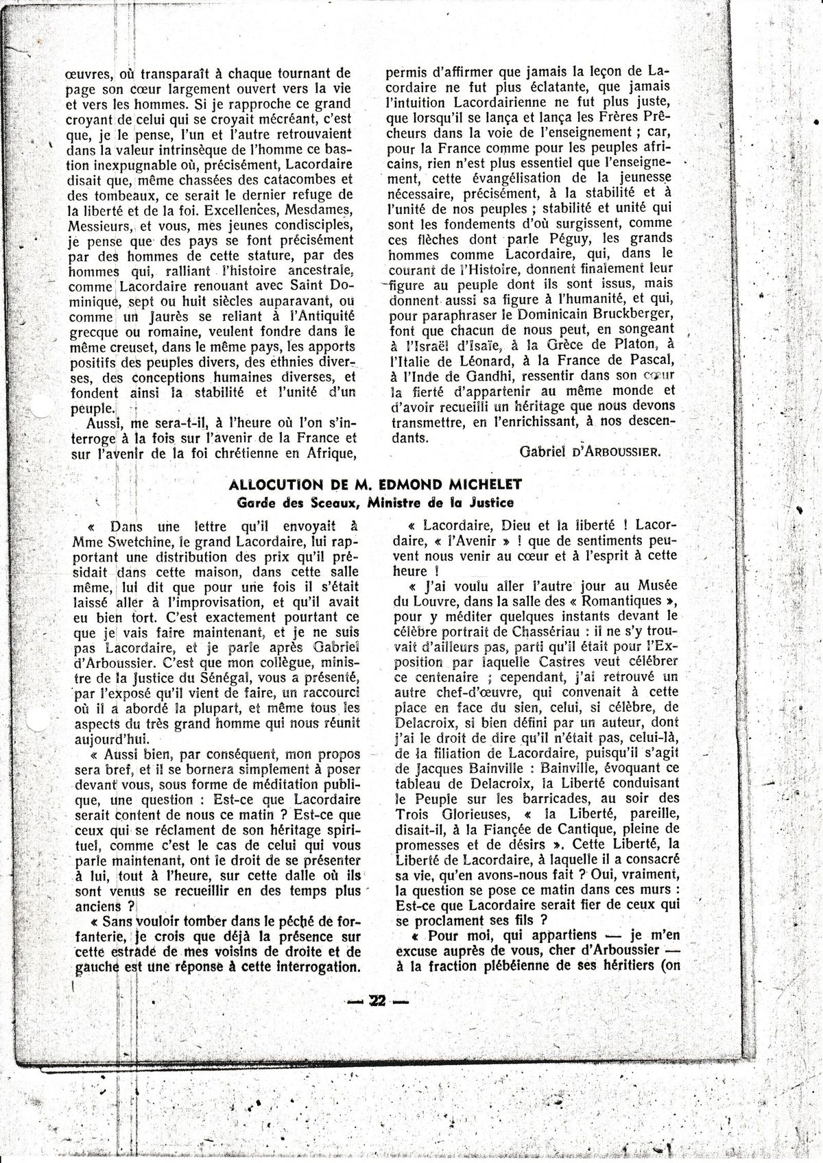 Conférence de Gabriel D'Arboussier