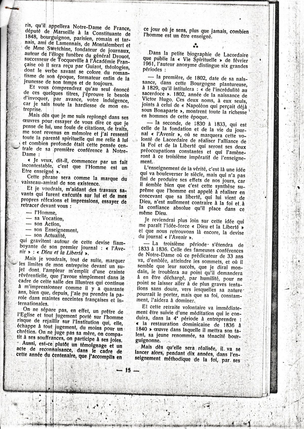 sur le Père Lacordaire
