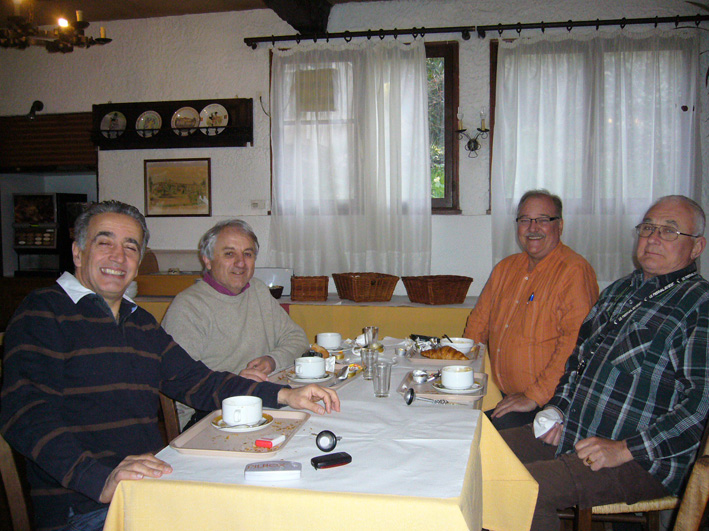 | Christian Vialle, Robert Marty, Gaston Bergasse, JP Bossuge. A l'arrière plan, Mme Marty et Jean Nogarède