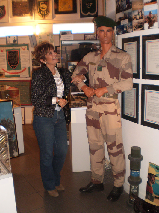 | Mme Grand au musée d'histoire et d'Art. Le soldat, tel un horse-guard, semble insensible au charme indéniable de sa cavalière. Tant pis pour lui !