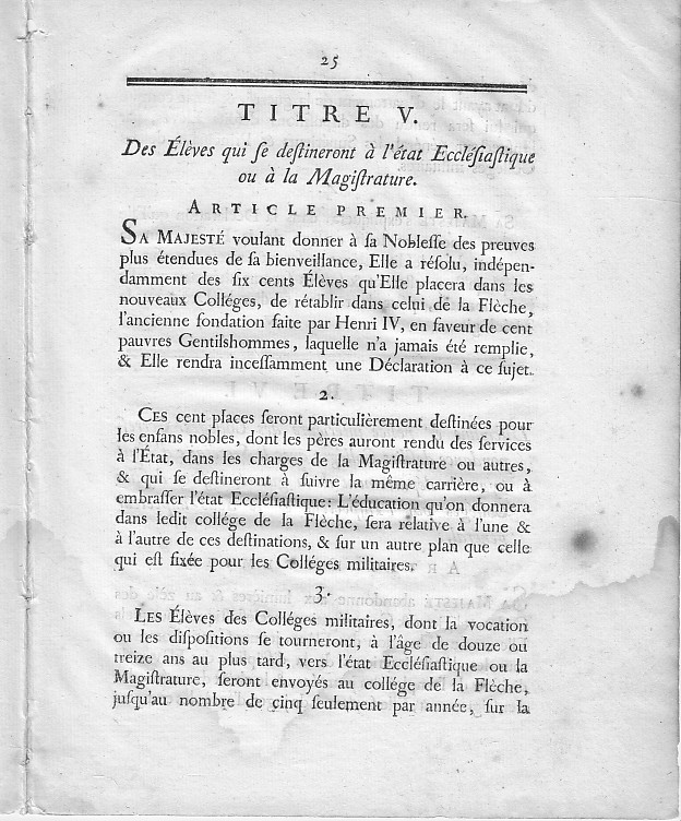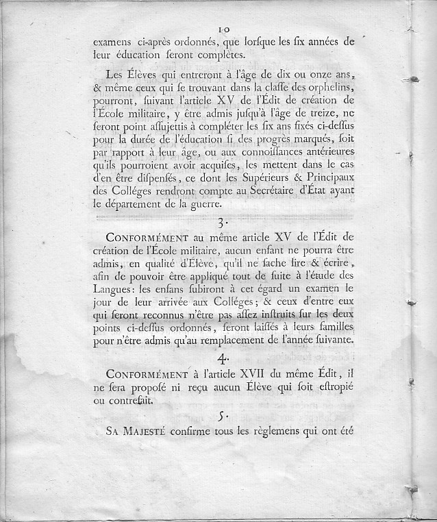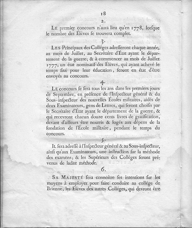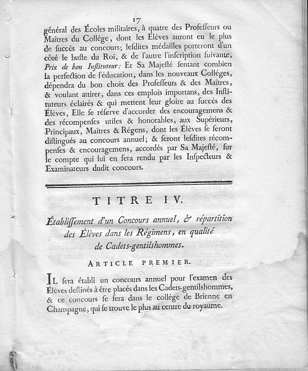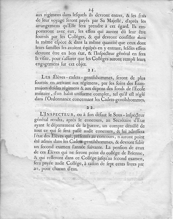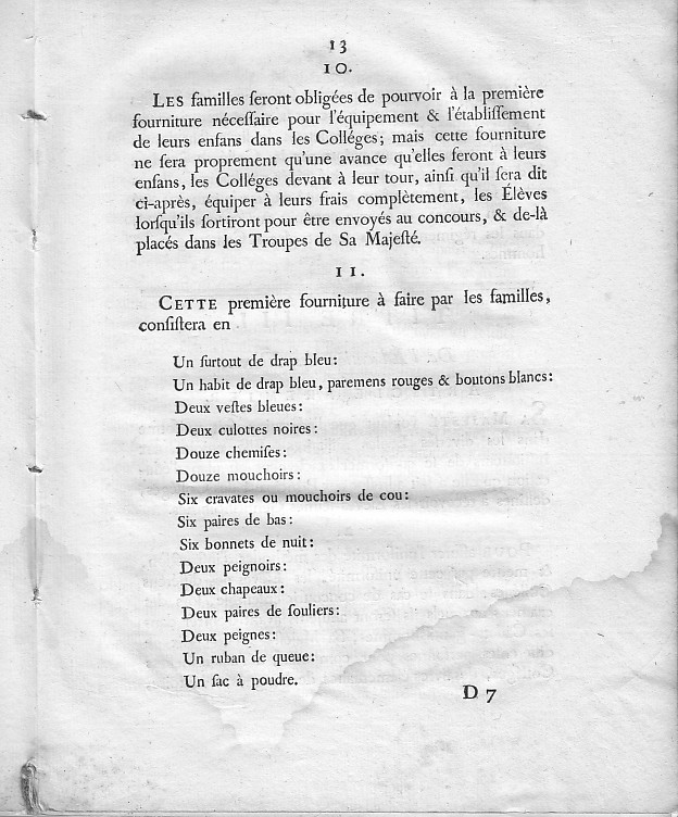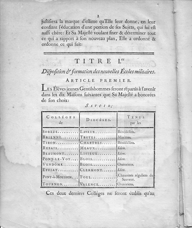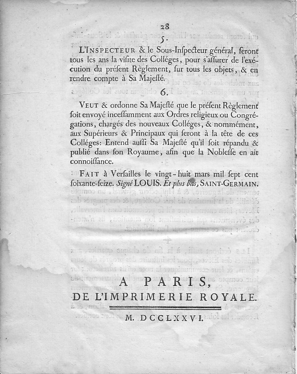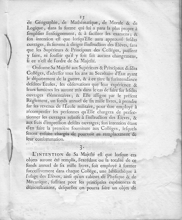 1776, Réglement concernant les nouvelles Ecoles Royales-militairesdocument original, d'époque