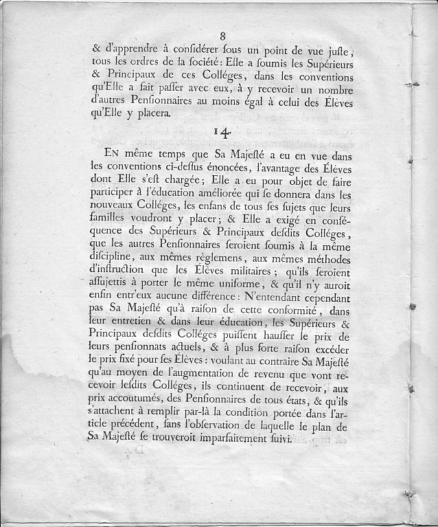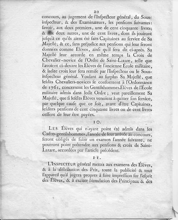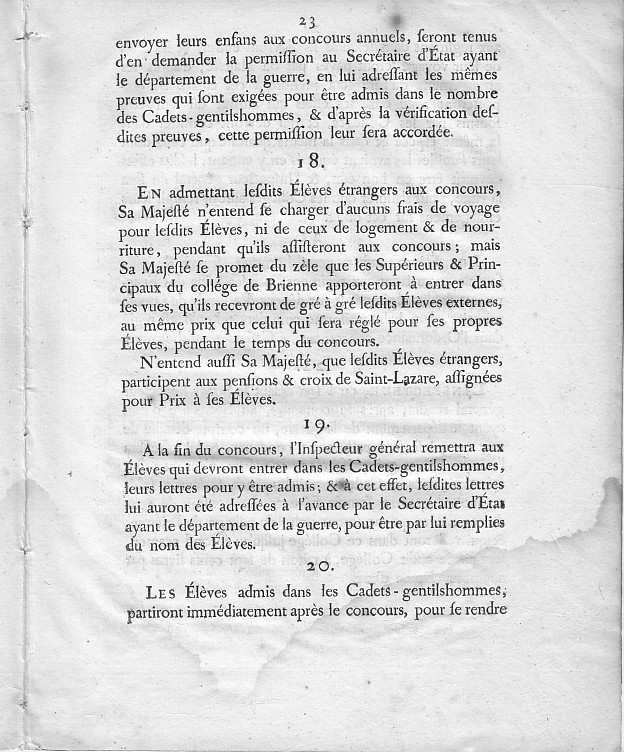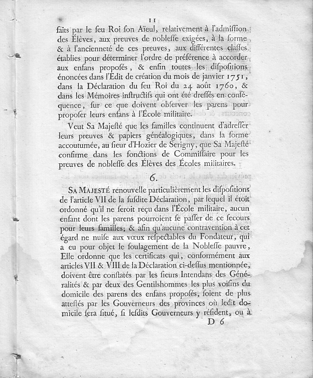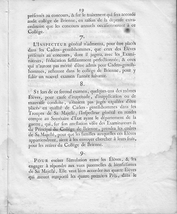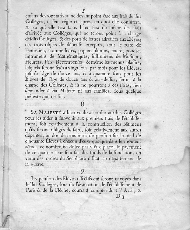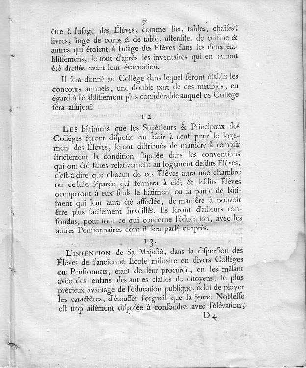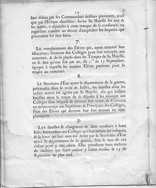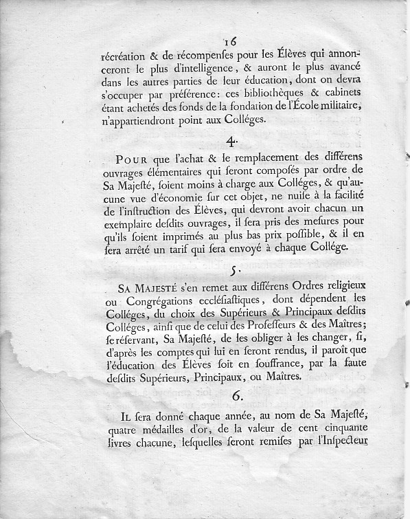 1776, Réglement concernant les nouvelles Ecoles Royales-militairesdocument original, d'époque