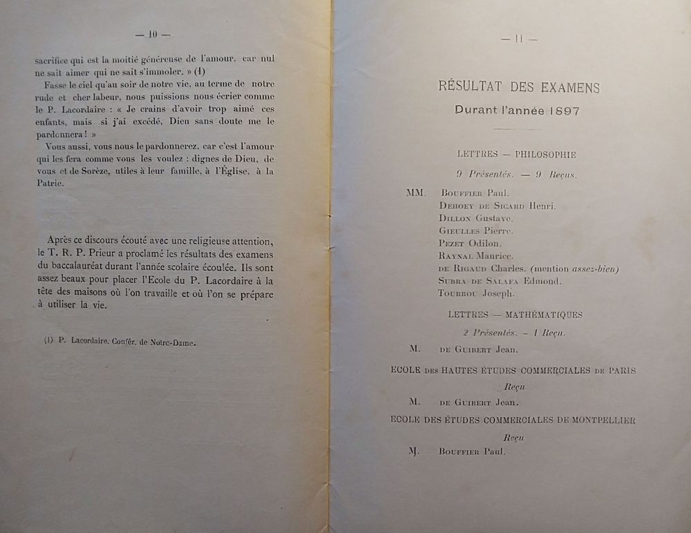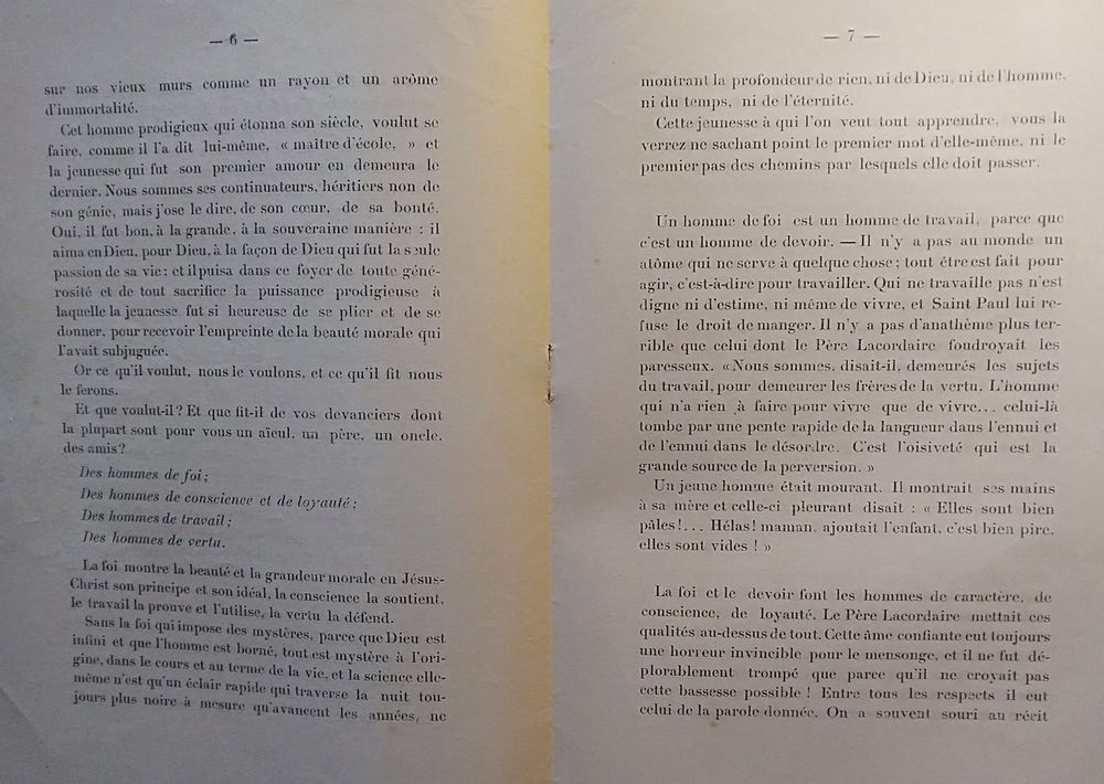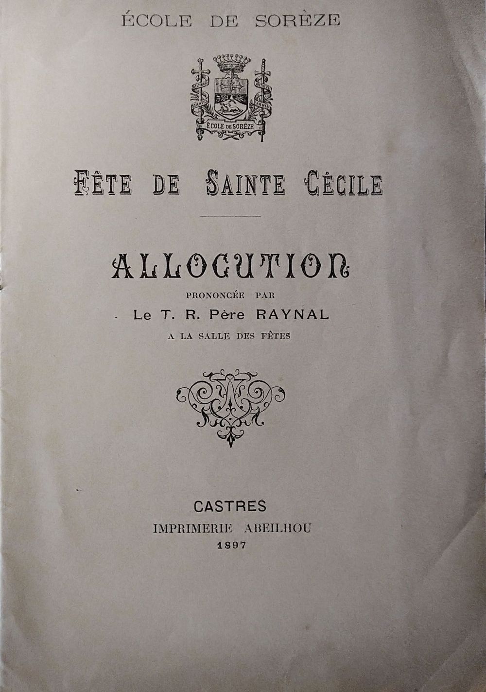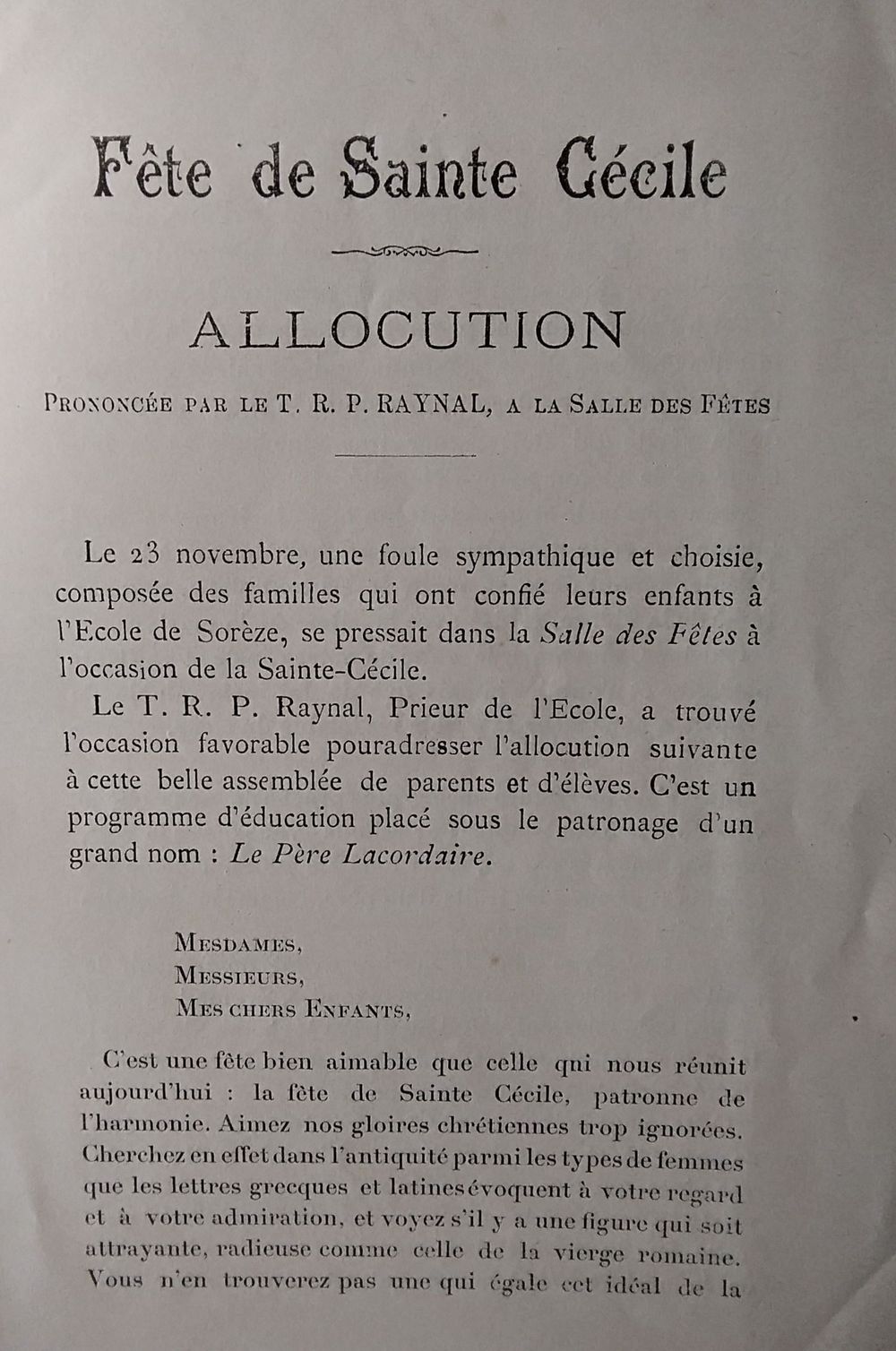 1897, Ste Cécile, allocution du Père Raynal