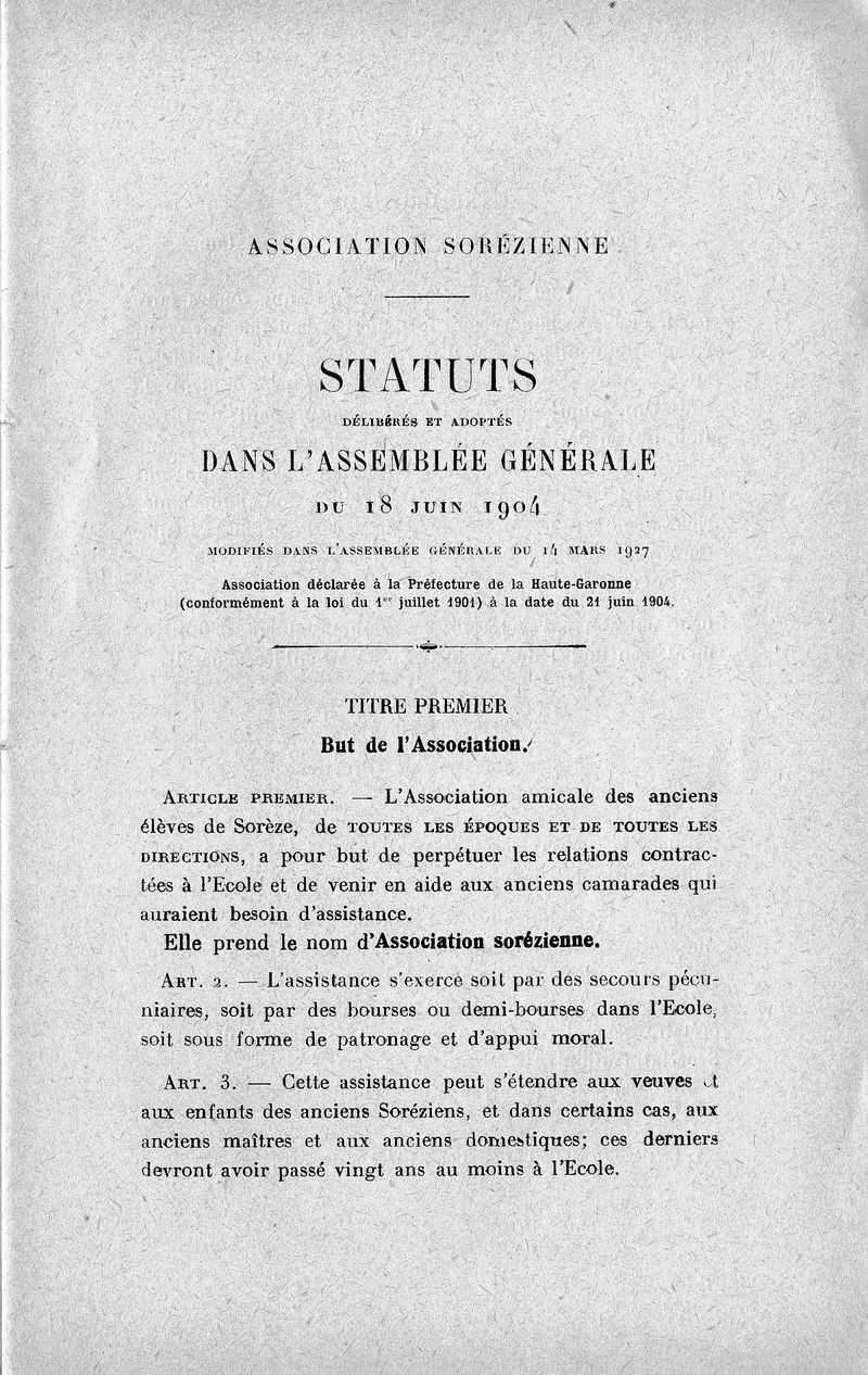 1929, 20 mai, statuts et AG de l'Association, Pentecôte