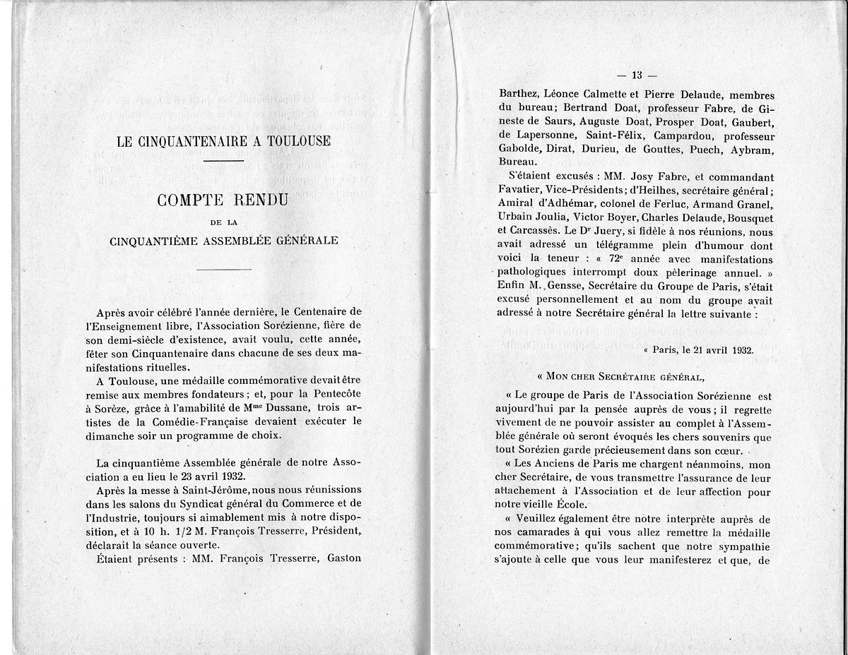 1932, 16 mai, statuts et AG de l'Association, Pentecôte