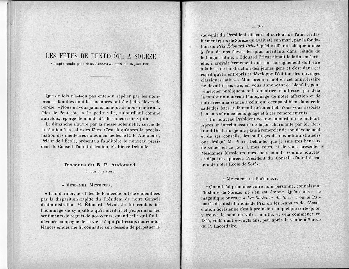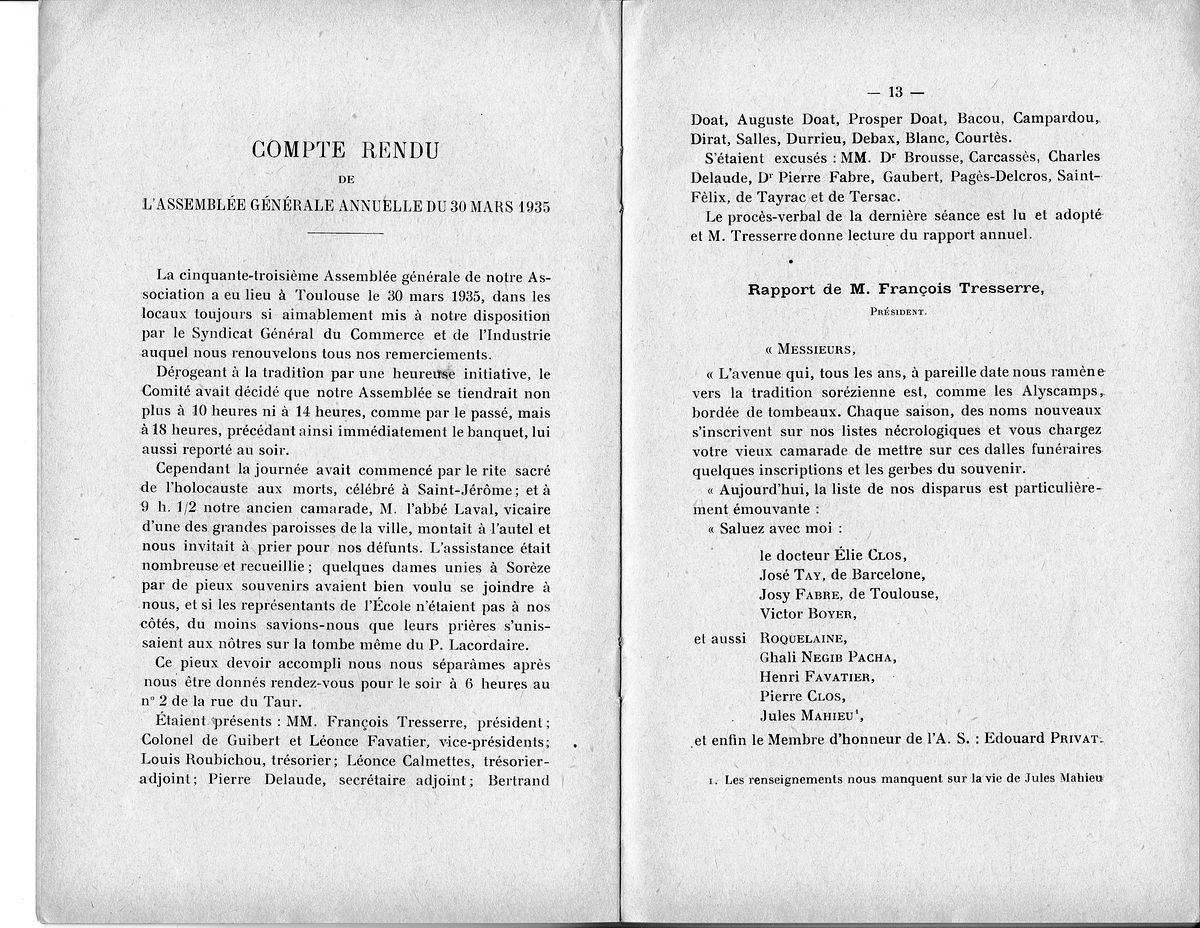 1935, 10 juin, statuts et AG de l'Association, Pentecôte
