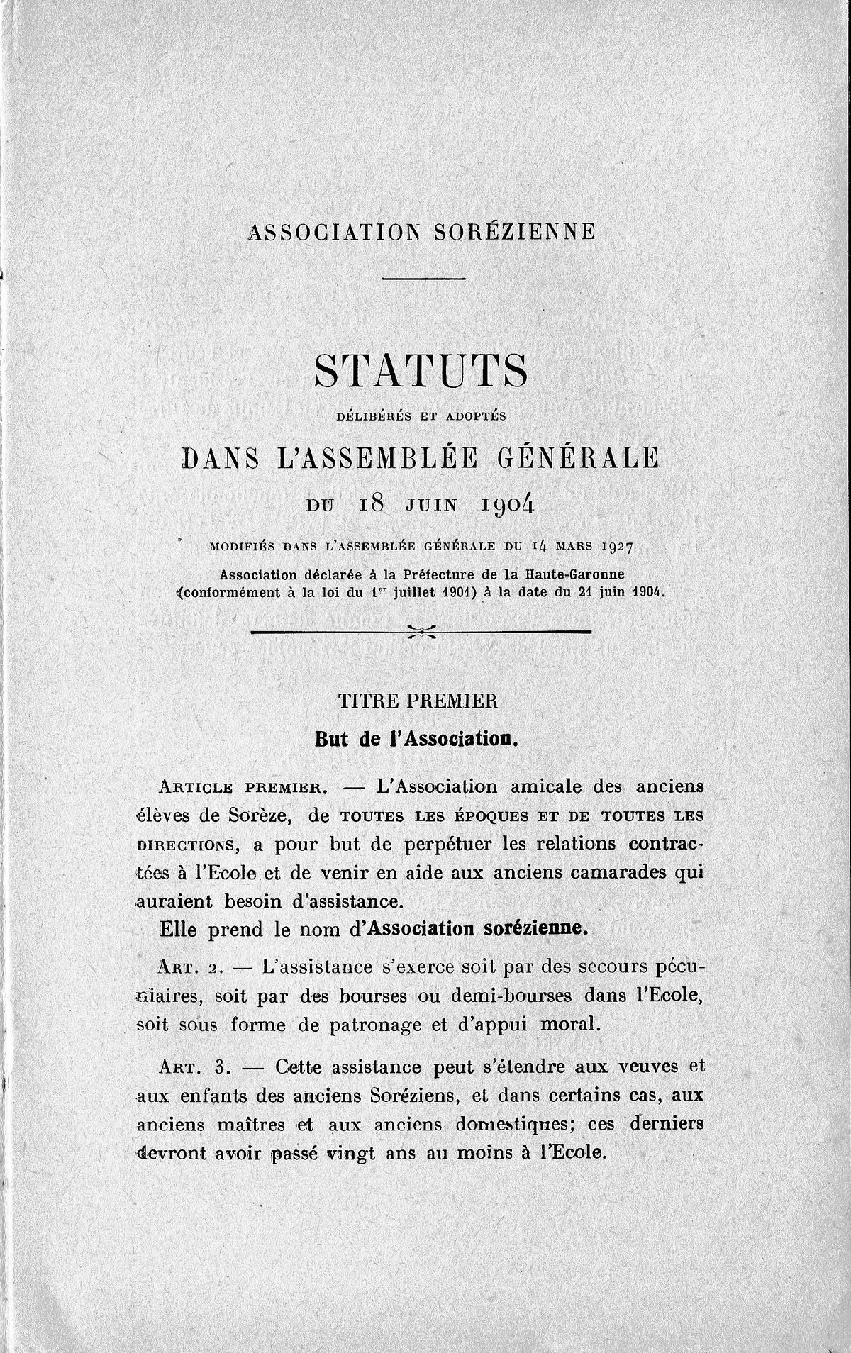 1936, 1er juin, statuts et AG de l'Association, Pentecôte