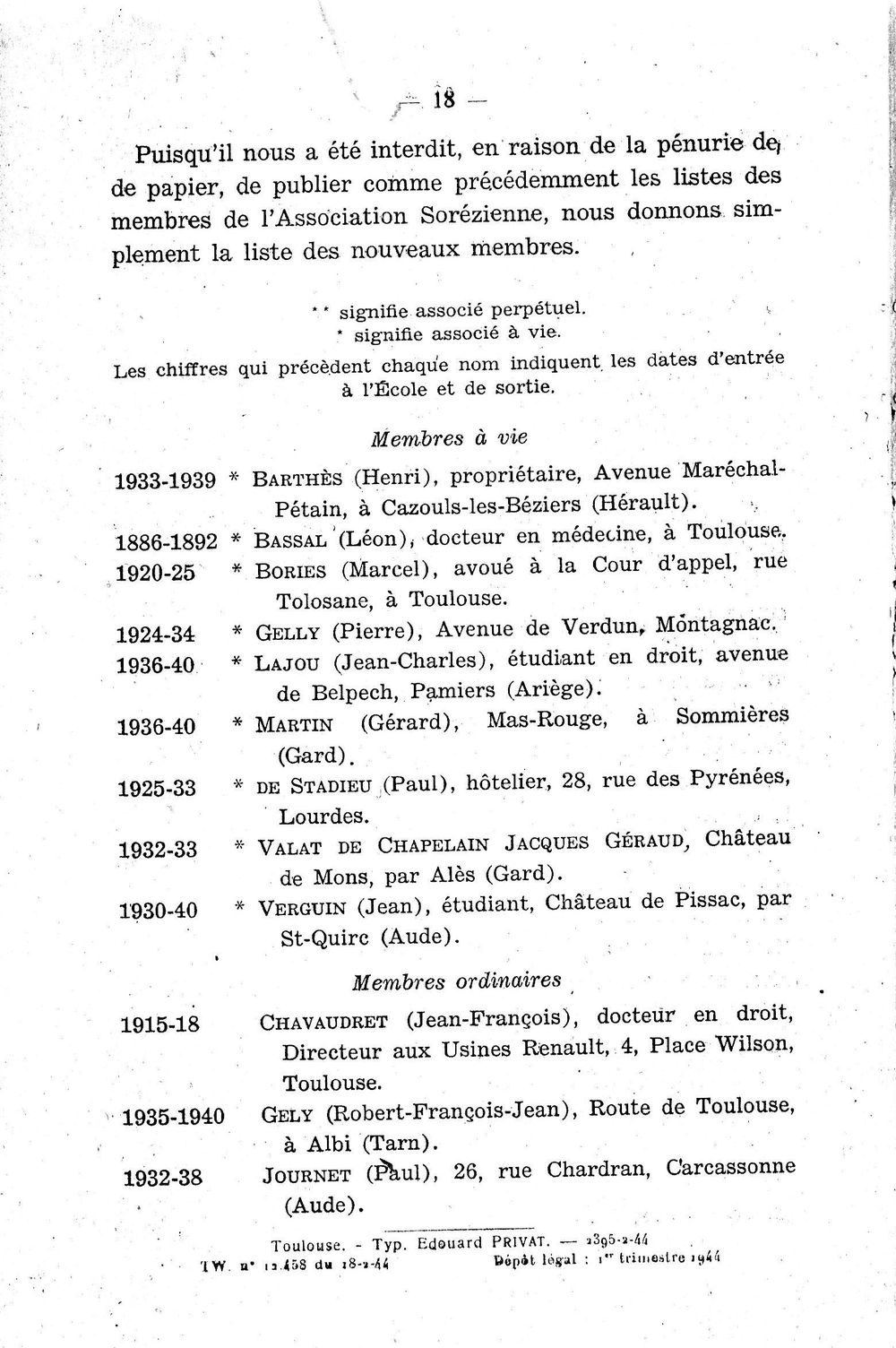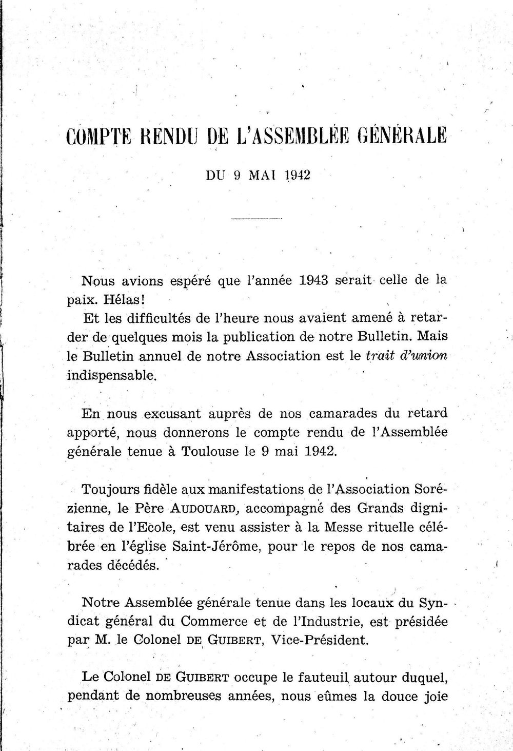 AG de l'Association Sorézienne le 9 mai 1942