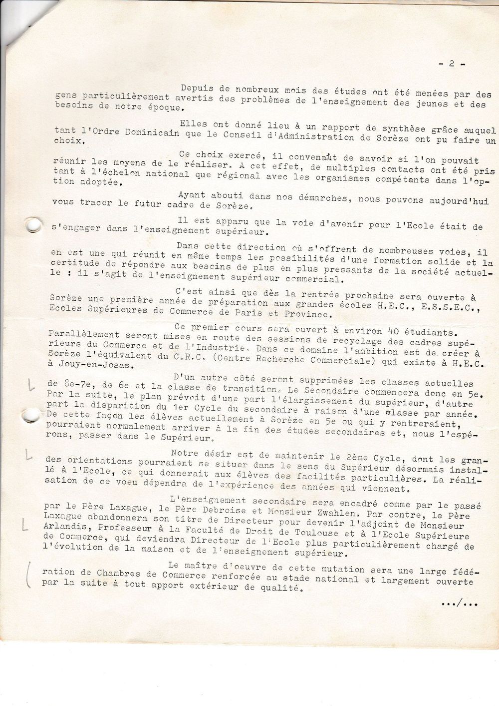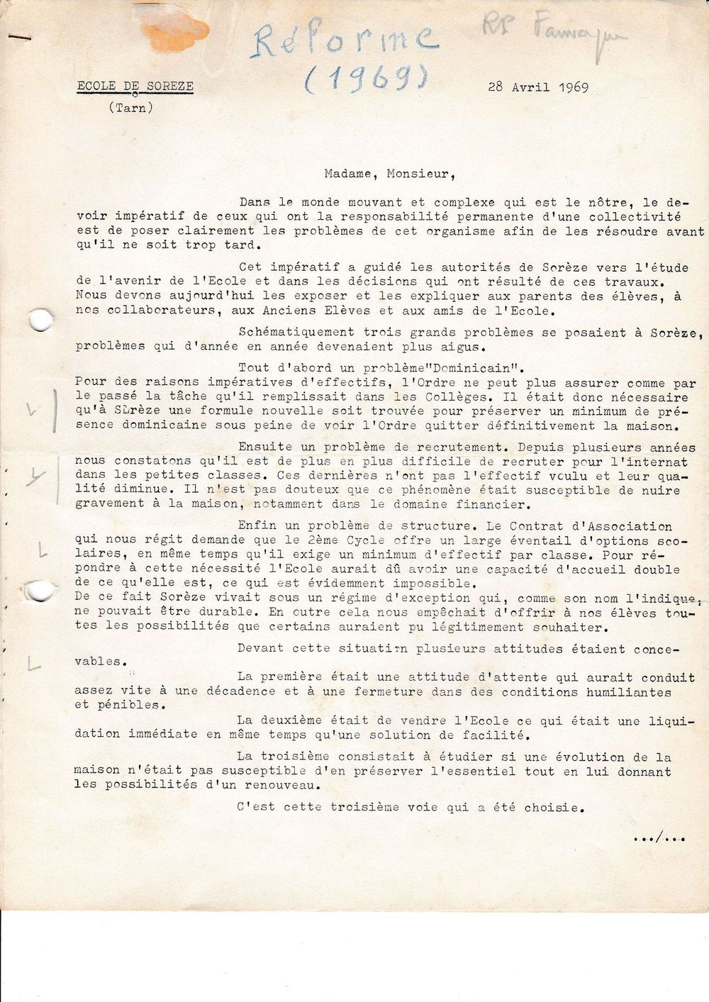 1969, 28 avril, André Galibert, président du CA de l'École,sur son avenir et les solutions envisagées