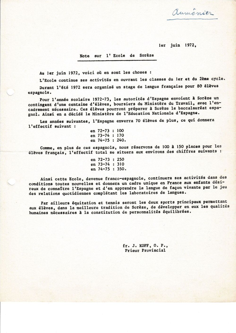 1er juin, le RP Kopf, Sorèze et le collège franco-espagnol