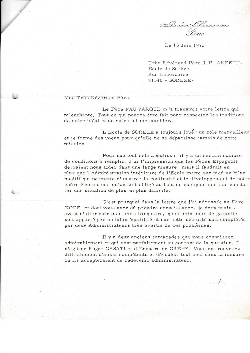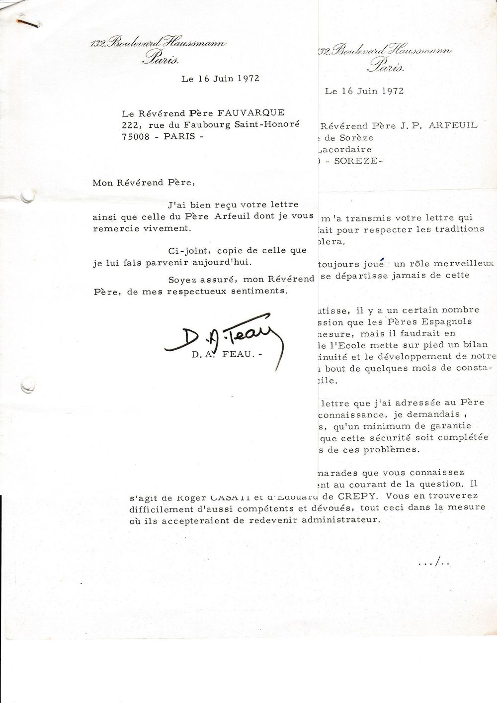 1972, 16 juin, Daniel Féau aux RP Fauvarque et Arfeuil