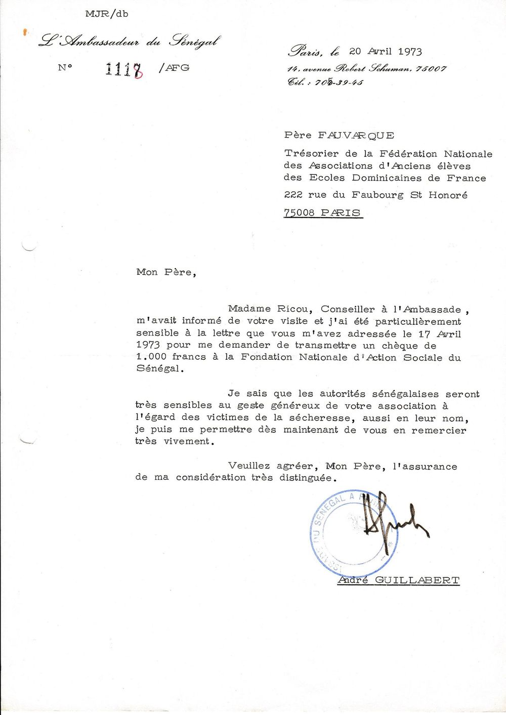 1973, 20 avril, l'ambassadeur du Sénégal au RP Fauvarque