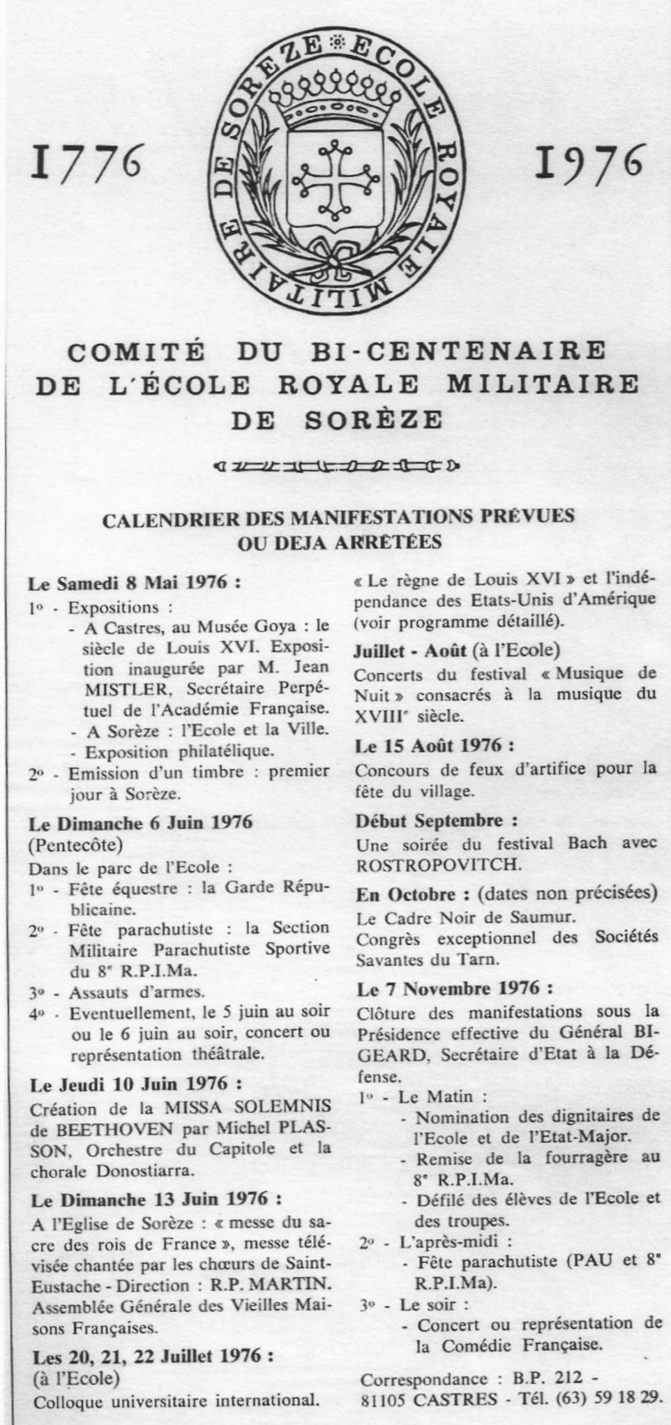 1976, calendrier des manifestations du bicentenaire 1776-1976
