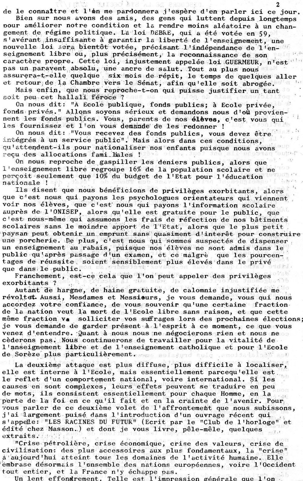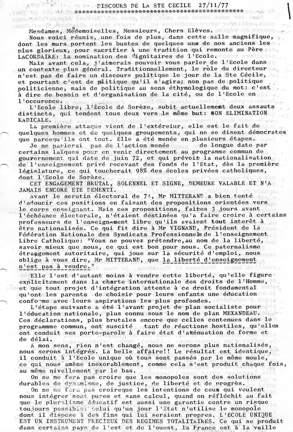 1977, 27 novembre, Ste Cécile, discours du directeur, Bernard Serres