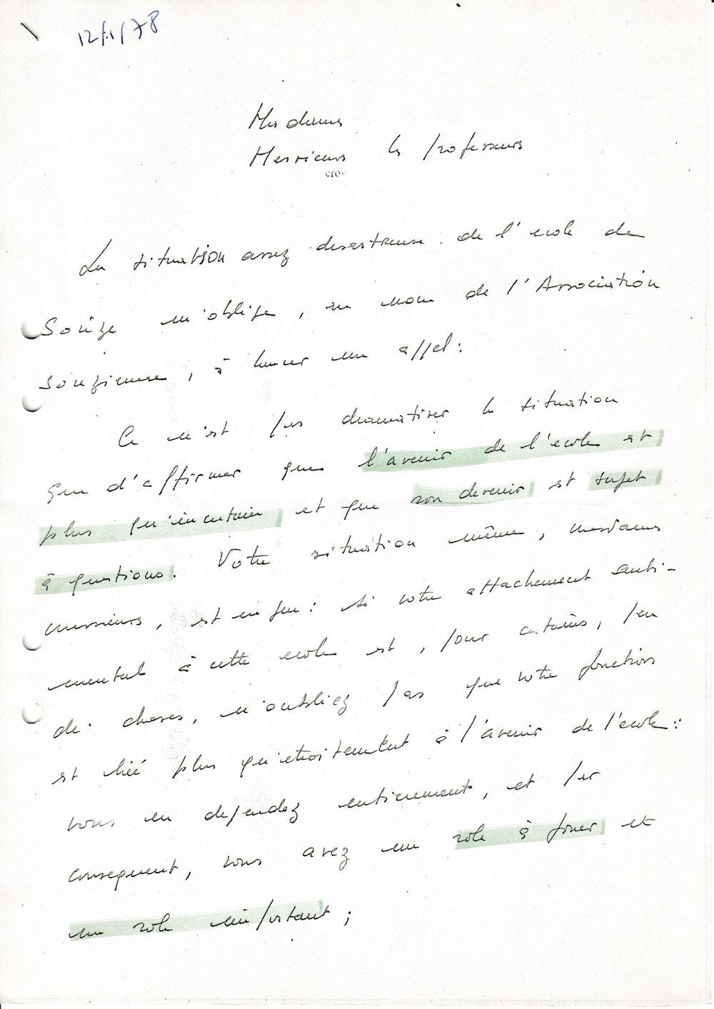 1978, 12 janvier, Henry De Bournazel aux professeurs