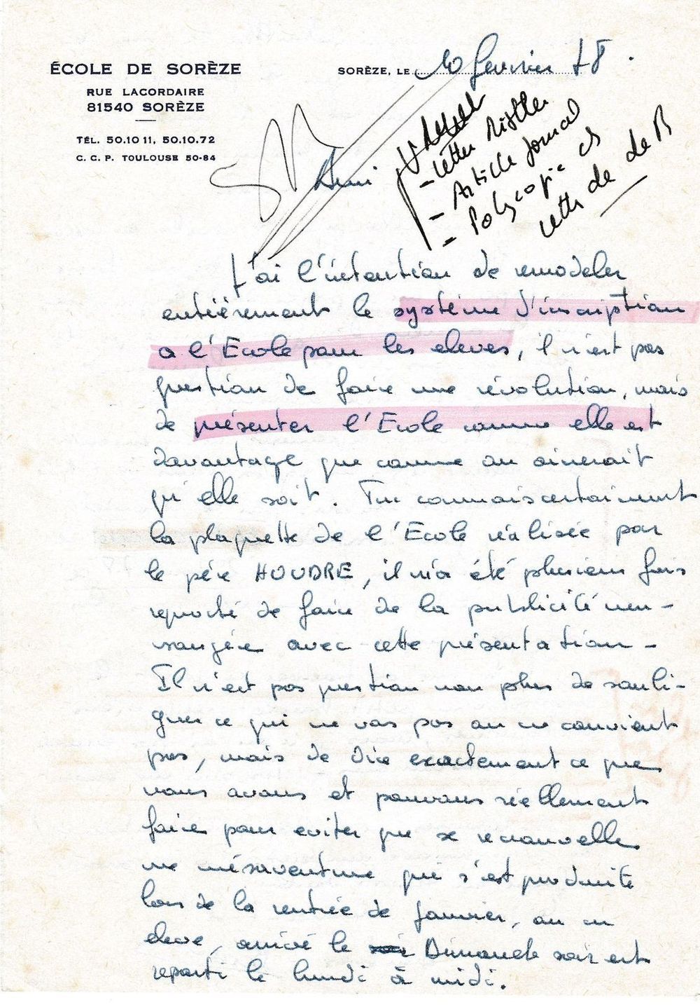 1978, 10 février, le directeur de l'École Bernard Serres à Mornand