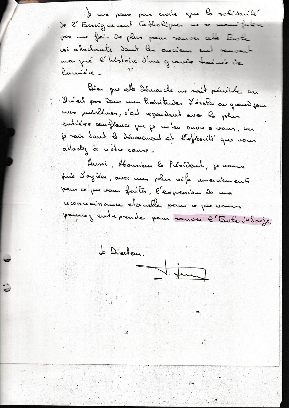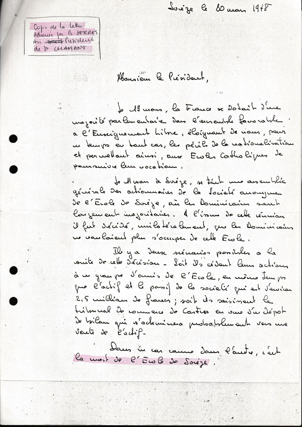1978, 20 mars, Bernard Serres à H. De Saint Chamant,Président de la Confédération Française des Amicales de l'Enseignement Catholique