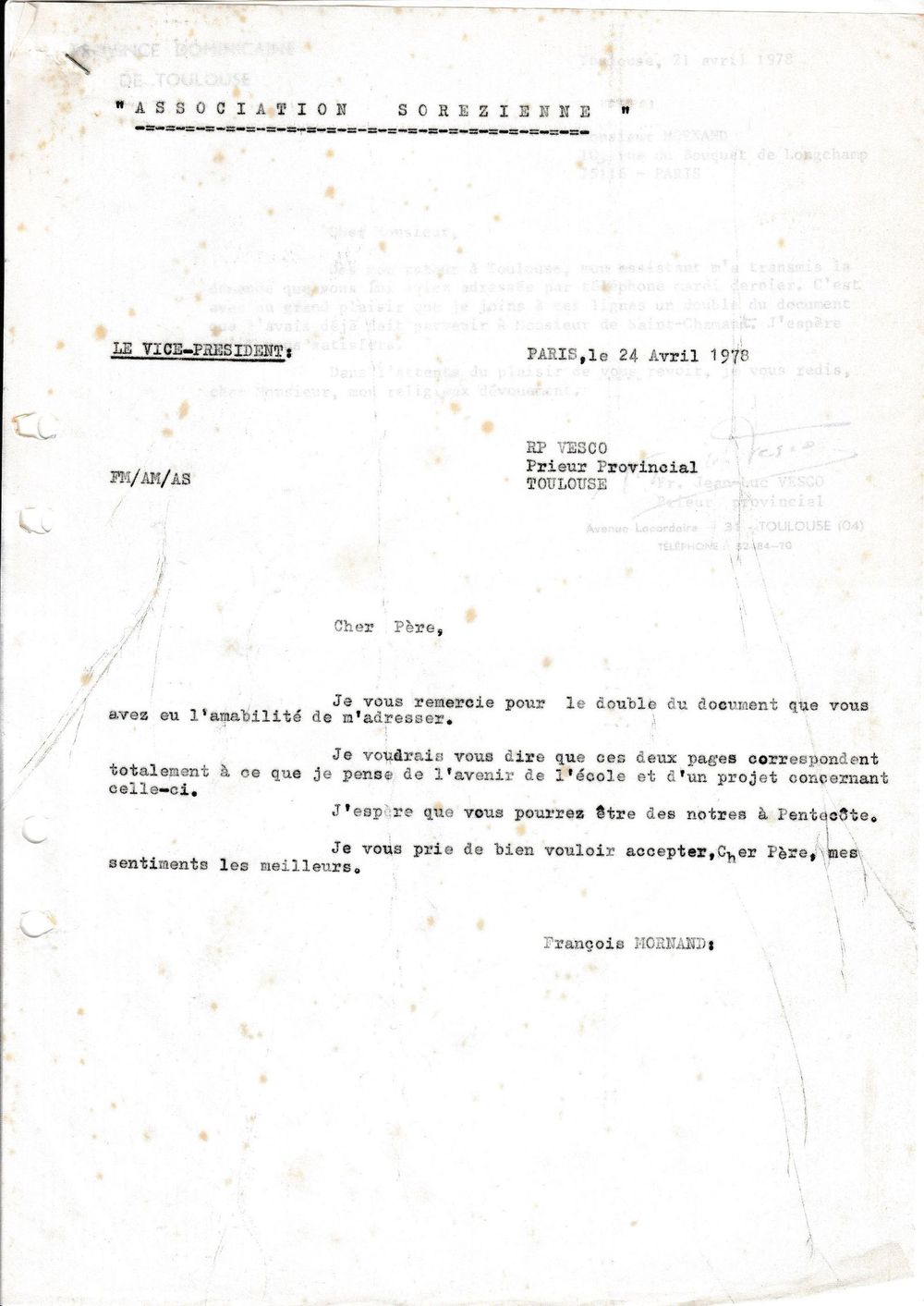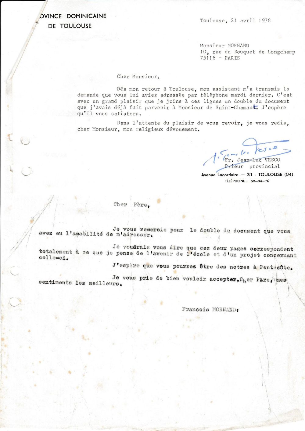 1978, 21-24 avril, échange entre le provincial et Mornand