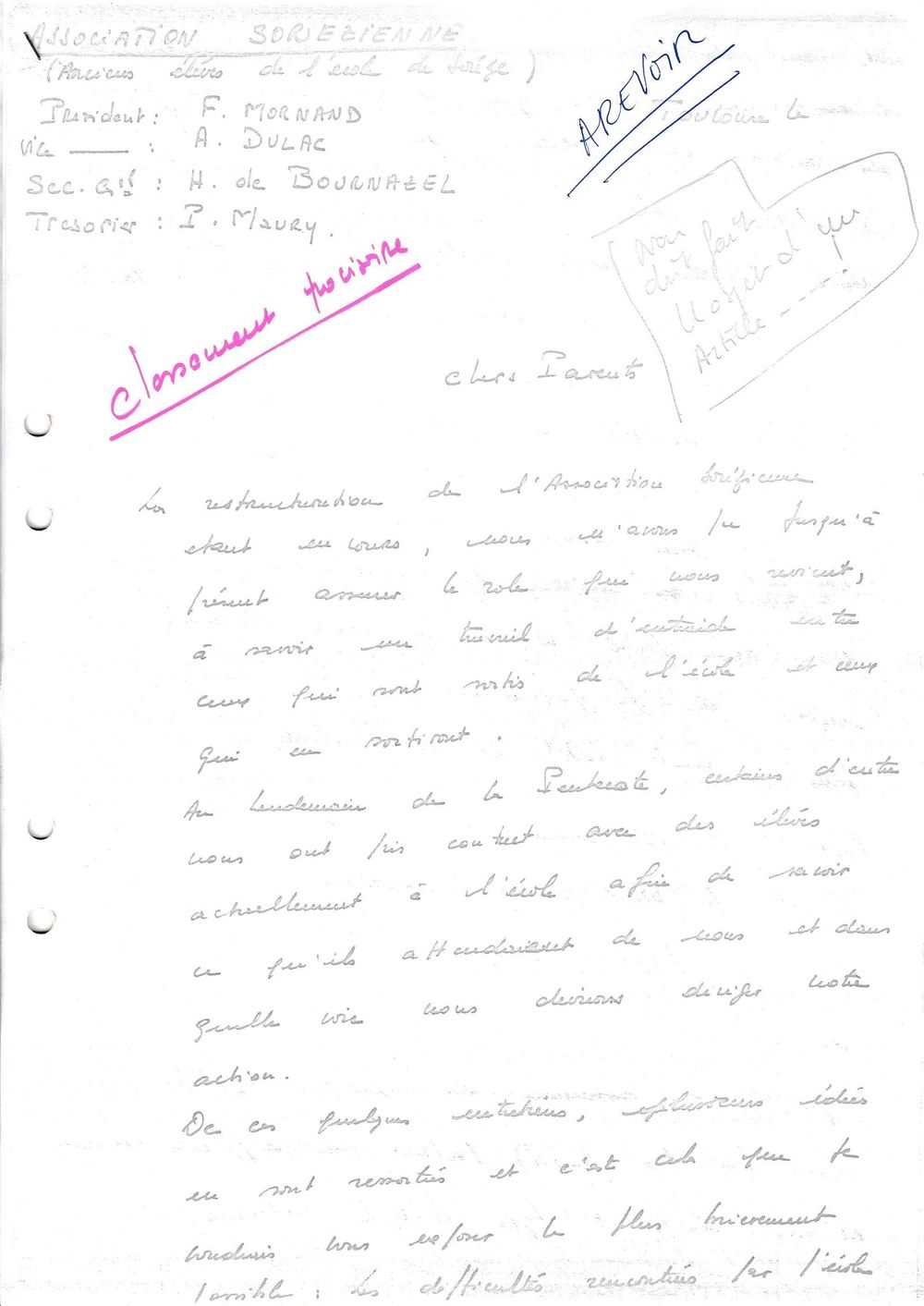 1978, 24 mai, Henry De Bournazel aux parents d'élèves