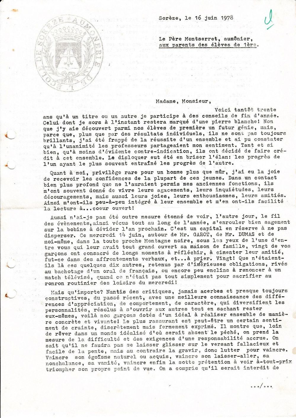 1978, 16 juin, Montserret aux parents d'élèves de 1ère