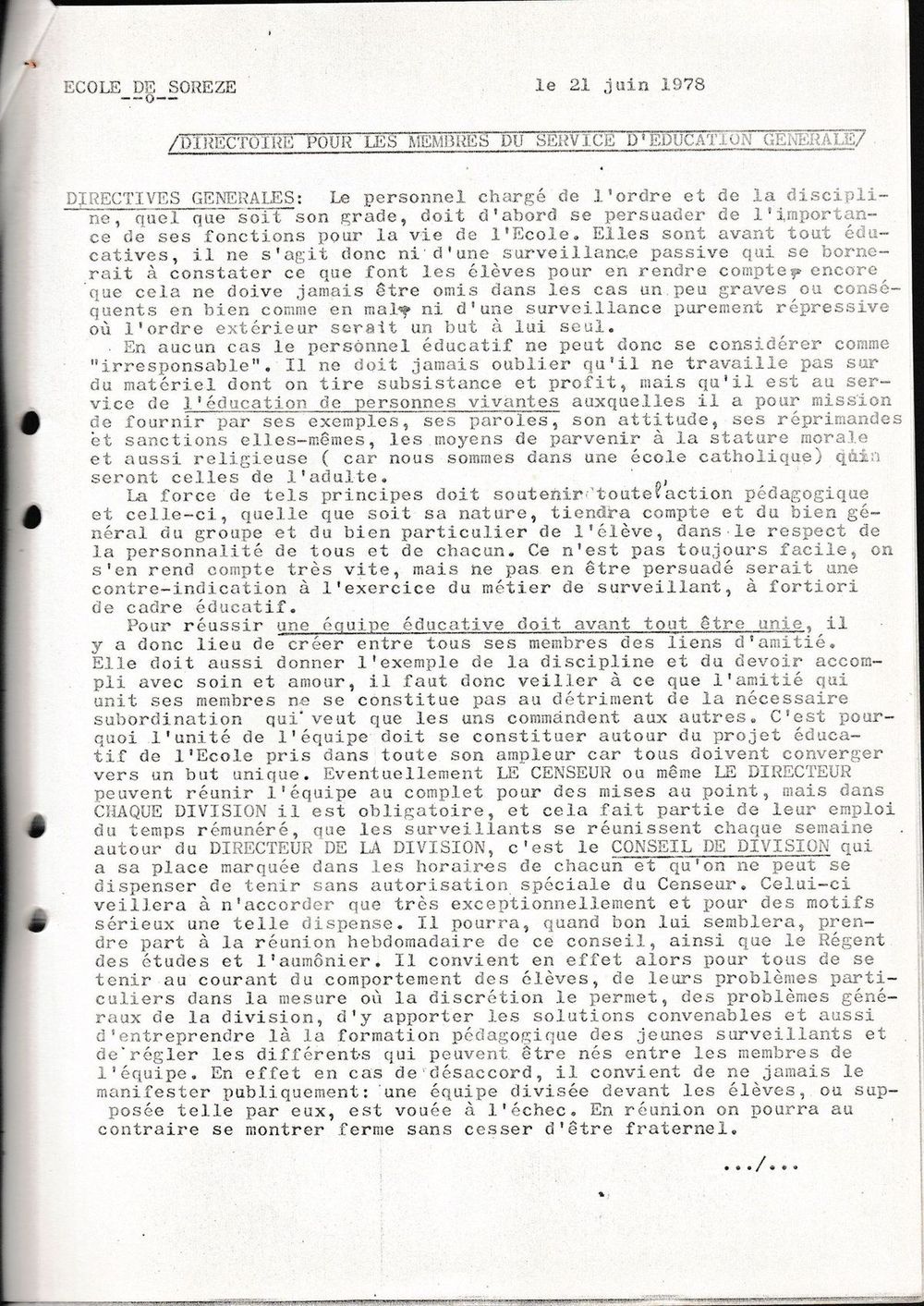 1978, 21 juin, directoire pour les membres du service d'éducation générale
