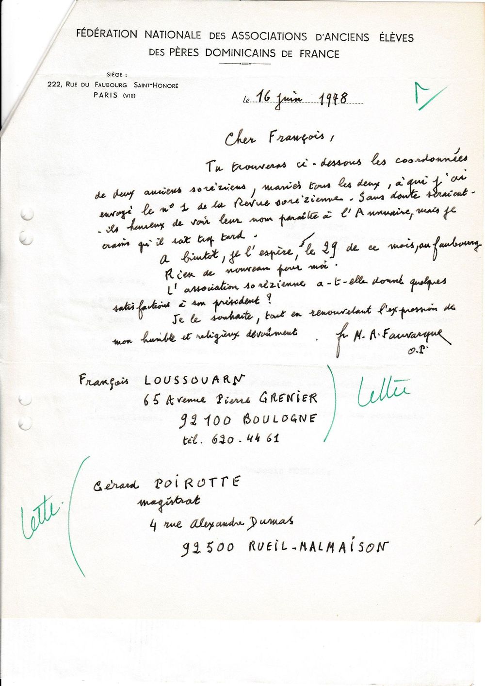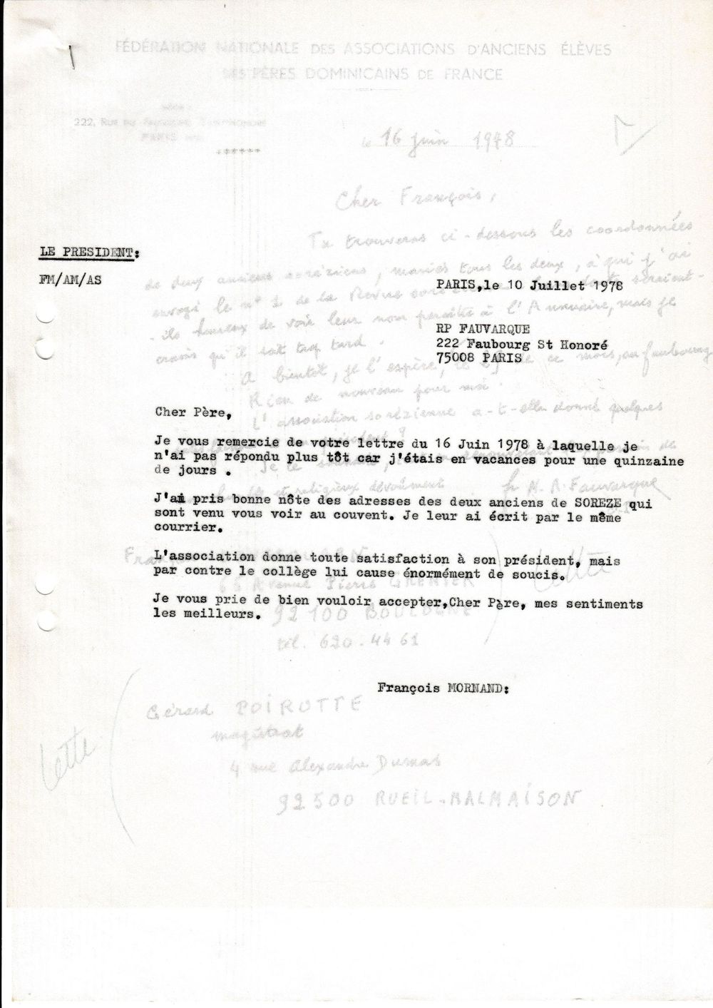 1978, 10 juillet, échange entre Mornand et le RP Fauvarque