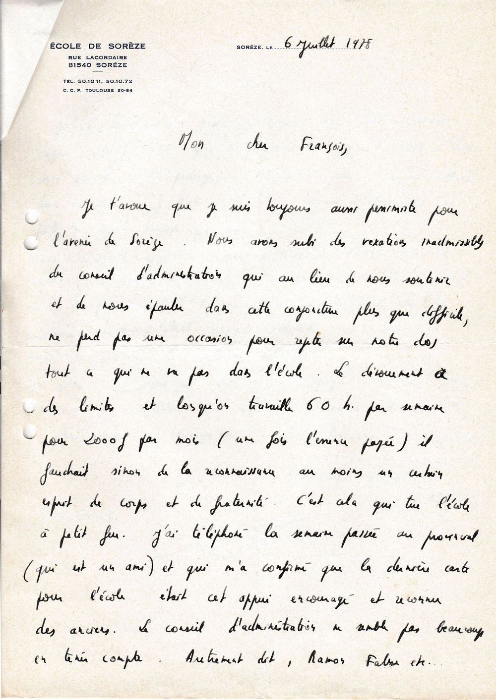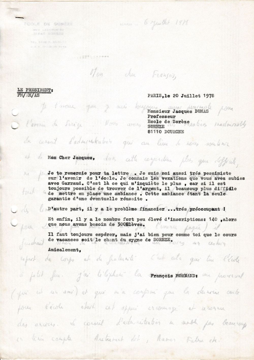1978, 20 juillet, échange entre Mornand et Jacques Dumas, professeur