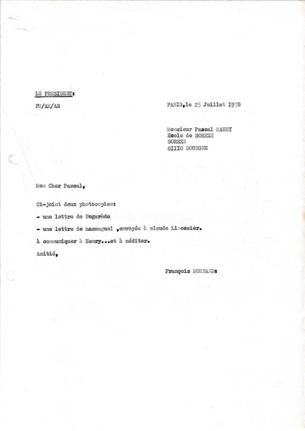 1978, 25 juillet, échange entre Mornand, le Père De Metz et Nogarède
