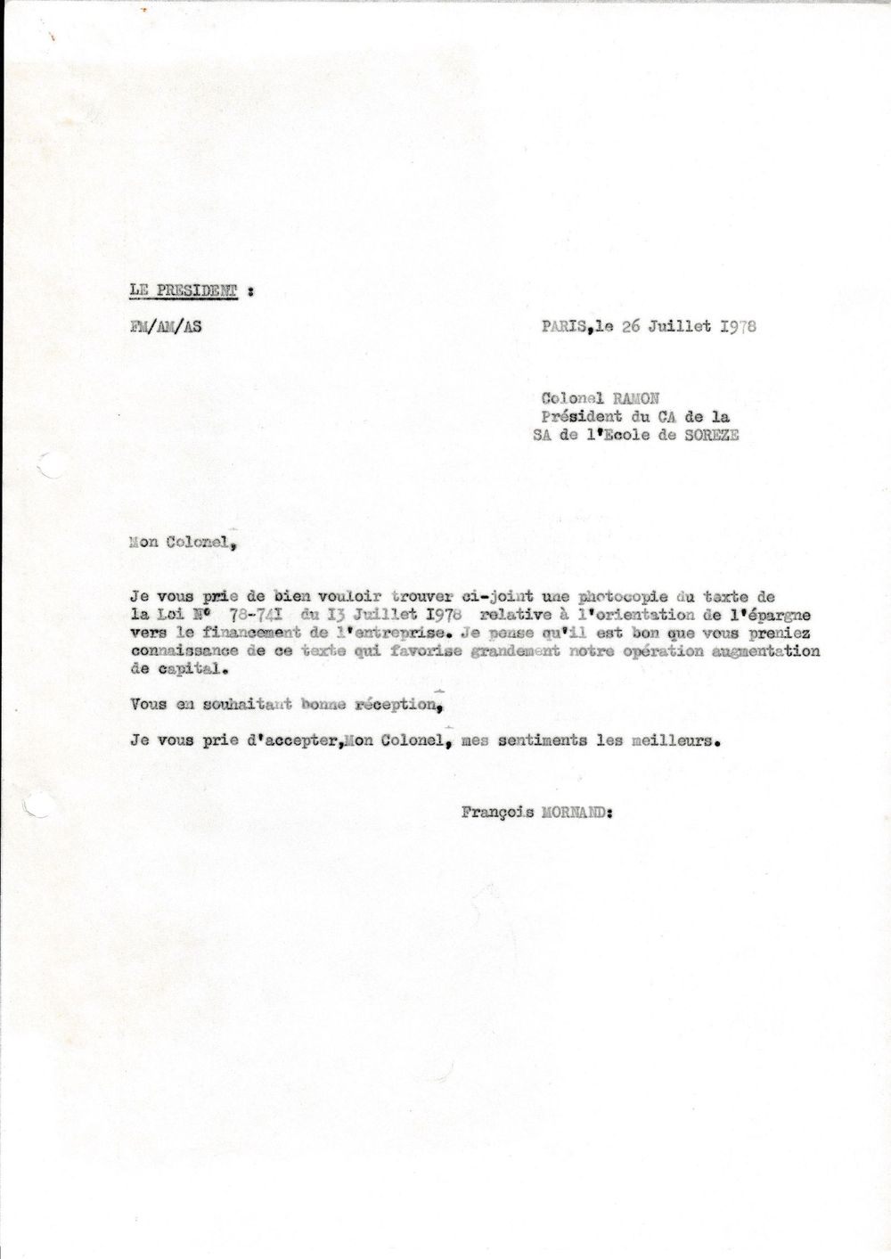 1978, 26 juillet, Mornand au Colonel Ramon