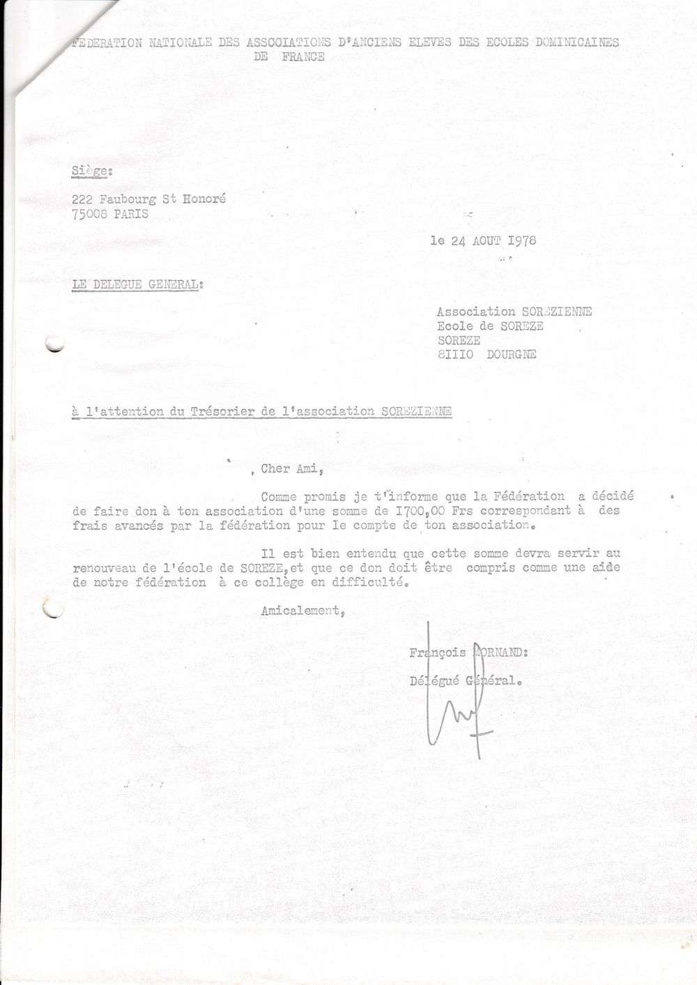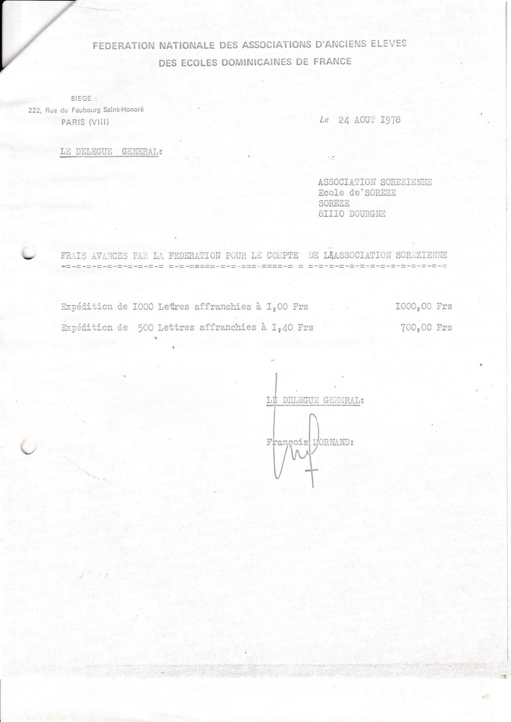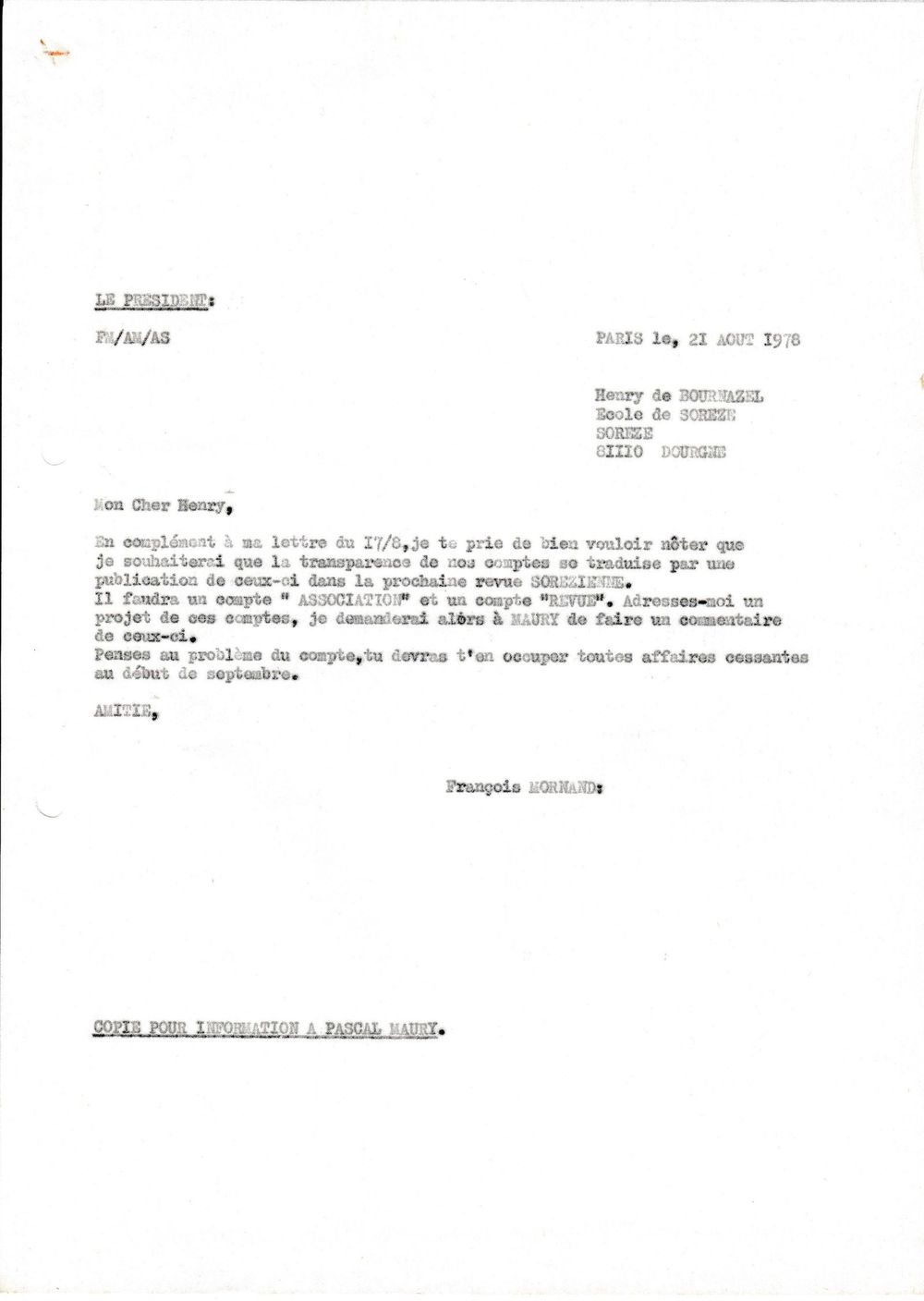 1978, 21 août, Mornand au secrétaire et au trésorier de l'AS