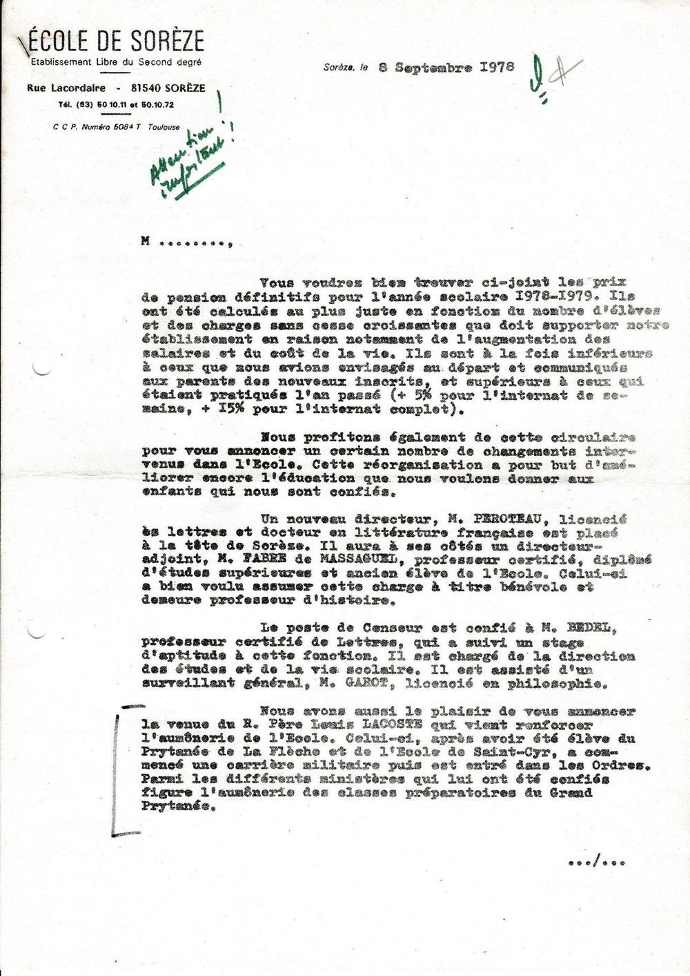 1978, 8 septembre, la CA aux parents d'élèves
