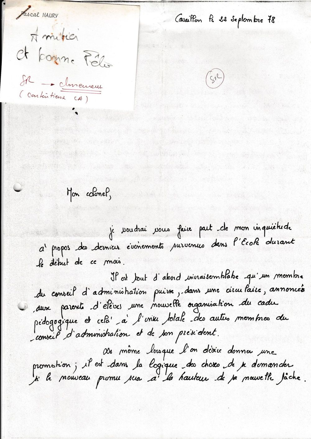 1978, 22 septembre, Maury au colonel Ramon avec lettres à Nogarède et Bournazel