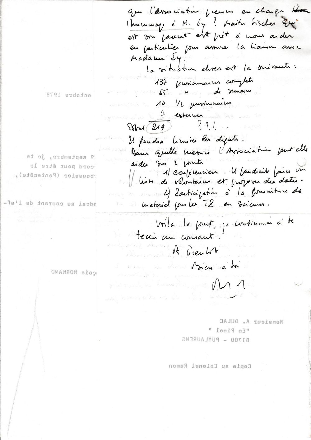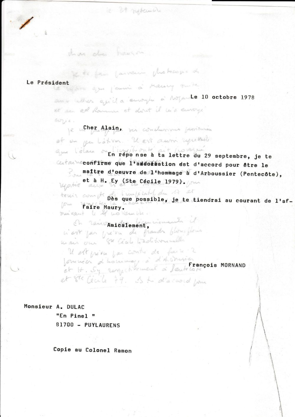 1978, 10 octobre, échange entre Mornand et Alain Du Lac