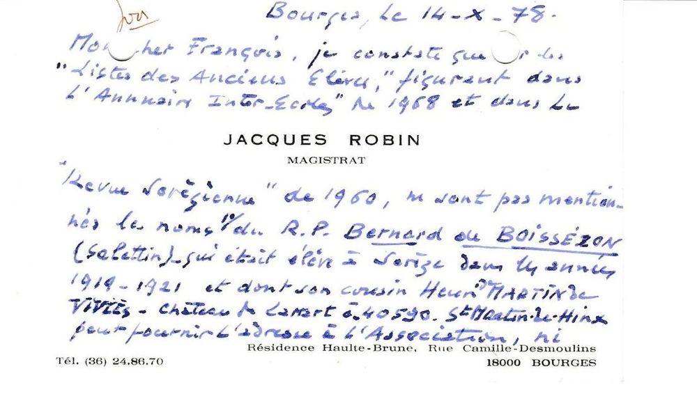 1978, 14 octobre, Jacques Robin, ancien président, à François Mornand
