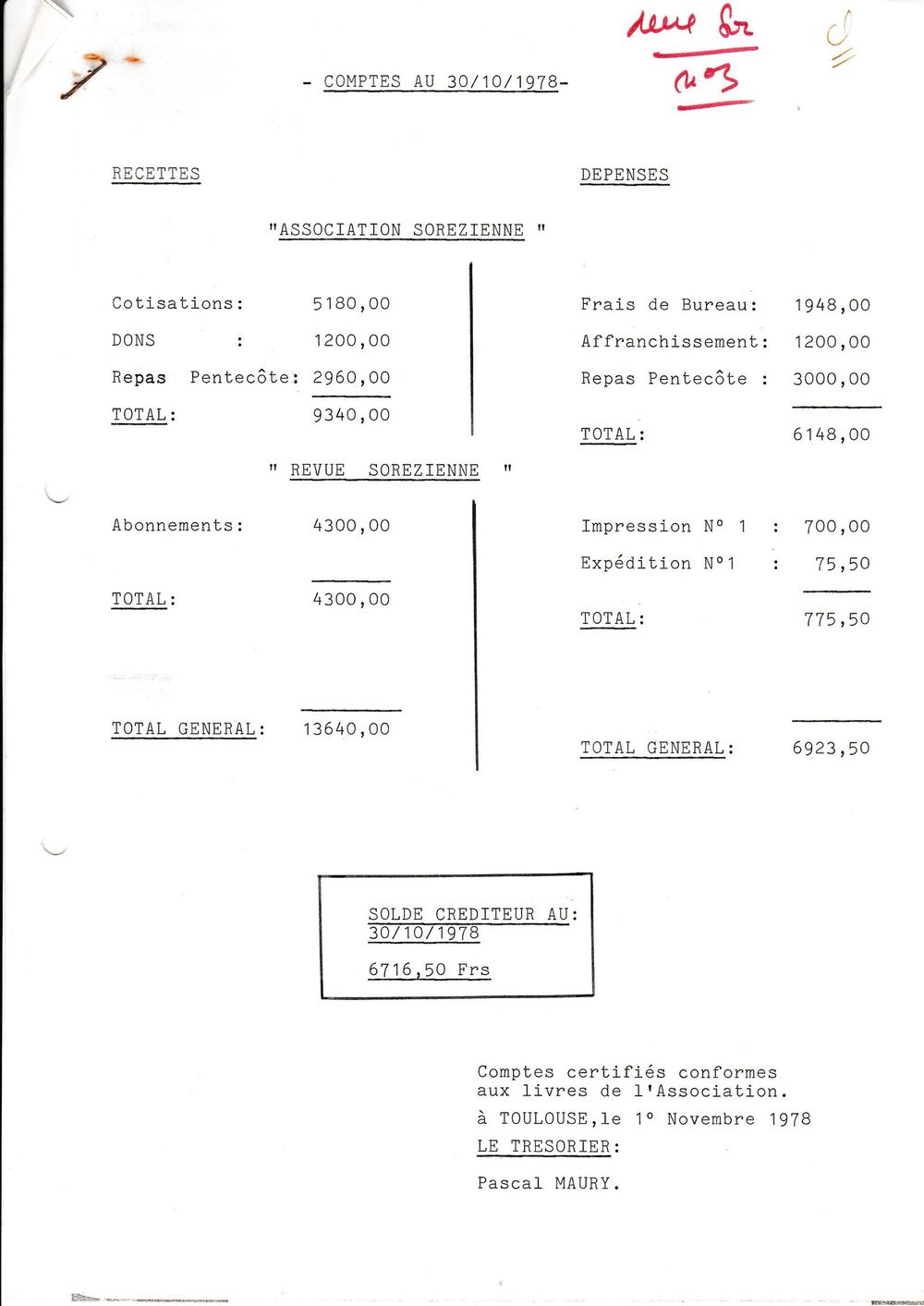 1978, 30 octobre, Mornand à Pascal Maury