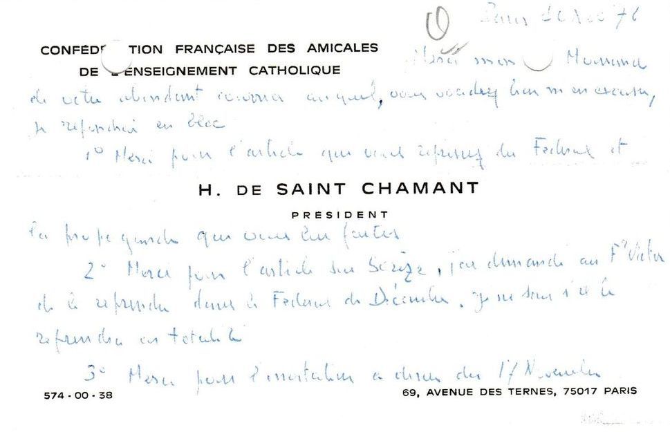 1978, 19 novembre, lettre d'Hubert De St Chamand à Mornand
