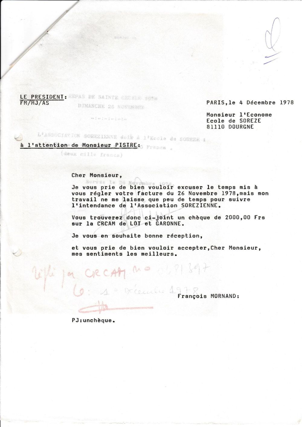 1978, 26 novembre, lettre de Pistre à Mornand et sa réponse