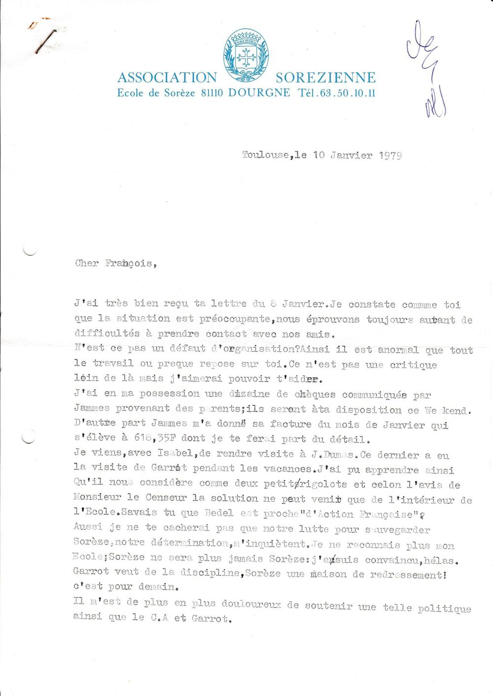 1979, 10 janvier, lettre de Pascal Maury à Mornand