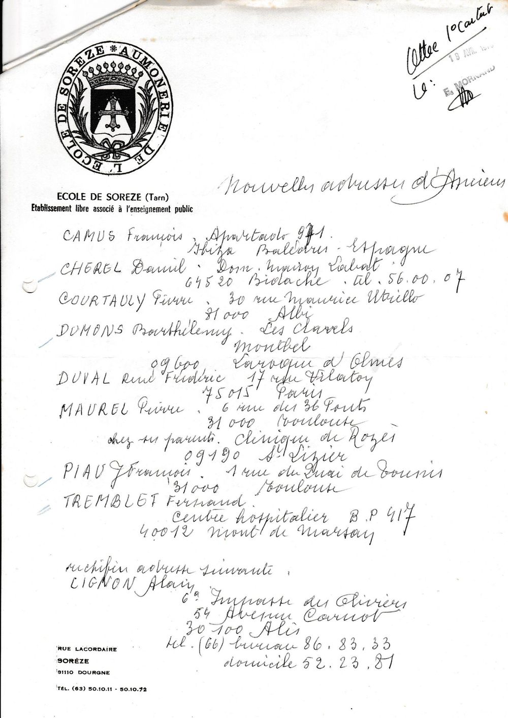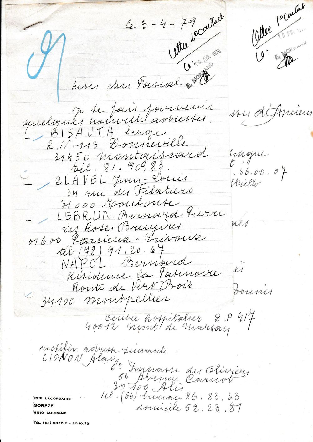 1979, 3 avril, Monsieur Carrière à Pascal Maury