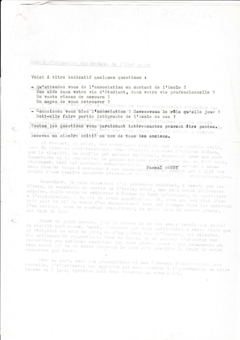 1979, 25 avril, Pascal Maury à l'État-Major