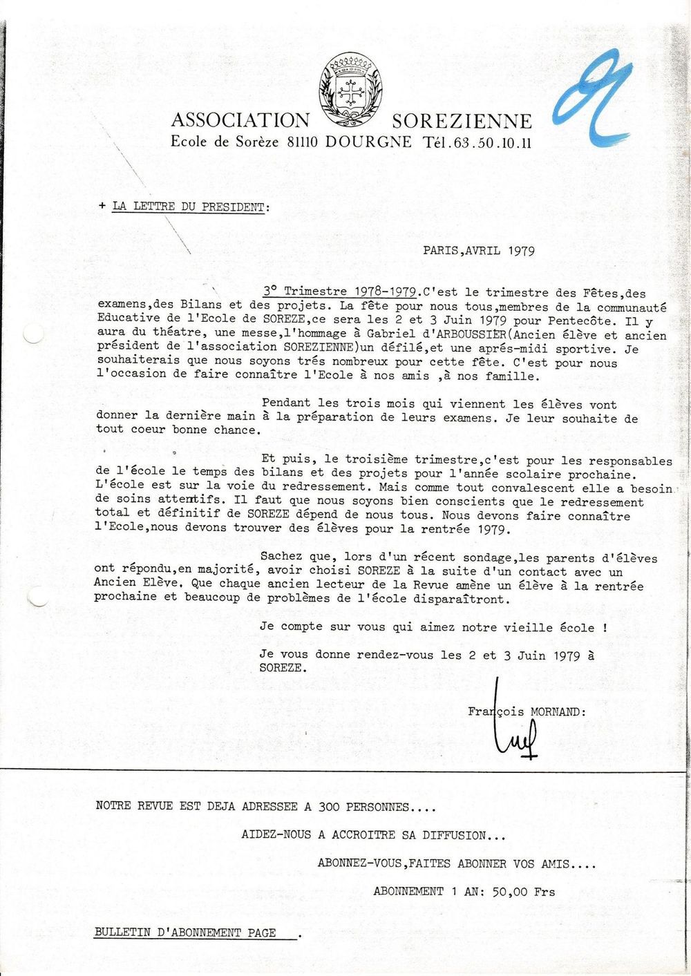 1979, avril, la lettre du président de l'A.S.