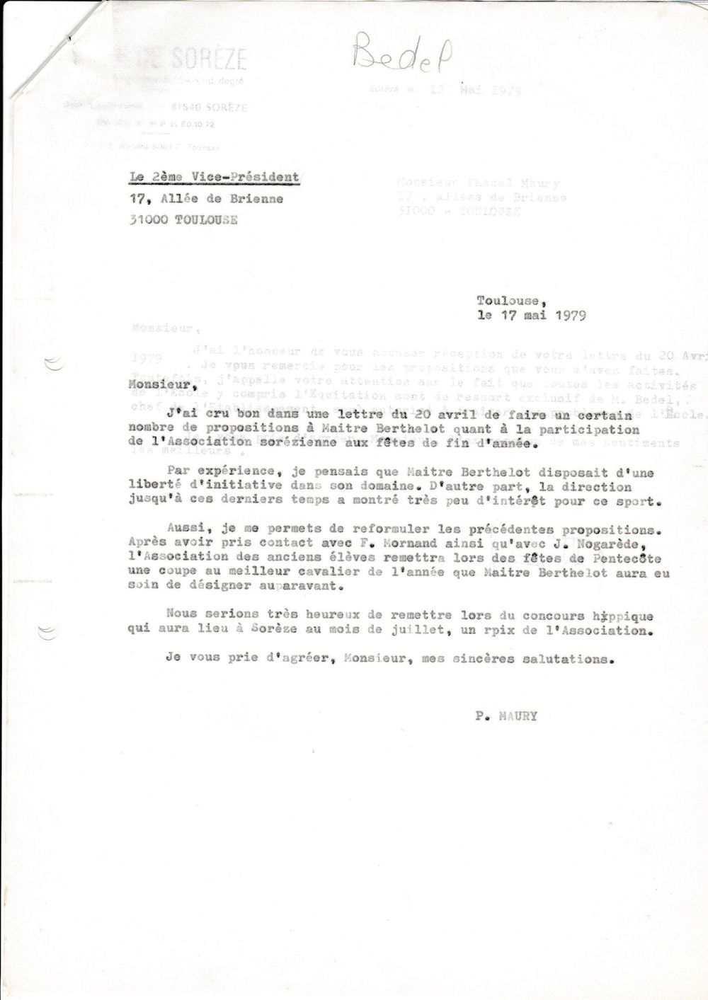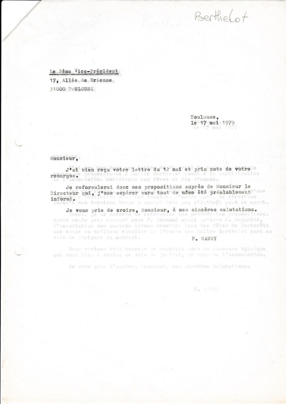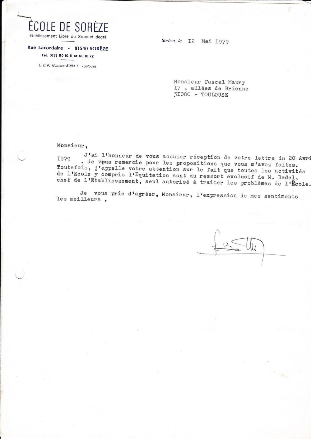 1979, 12 mai, échange entre l'École et Pascal Maury