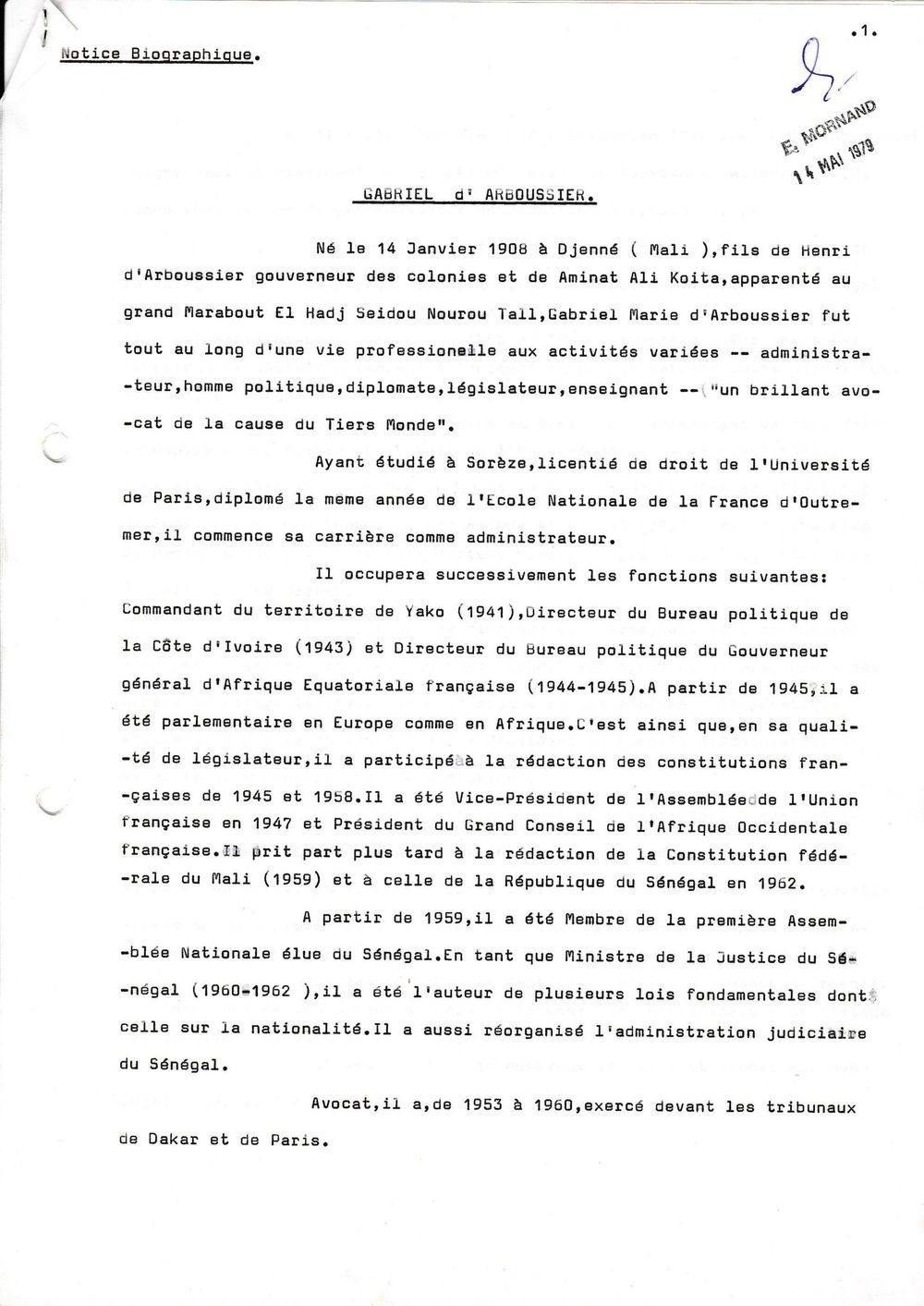 1979, 14 mai, discours d'inauguration du buste de D'Arboussier par Mornand