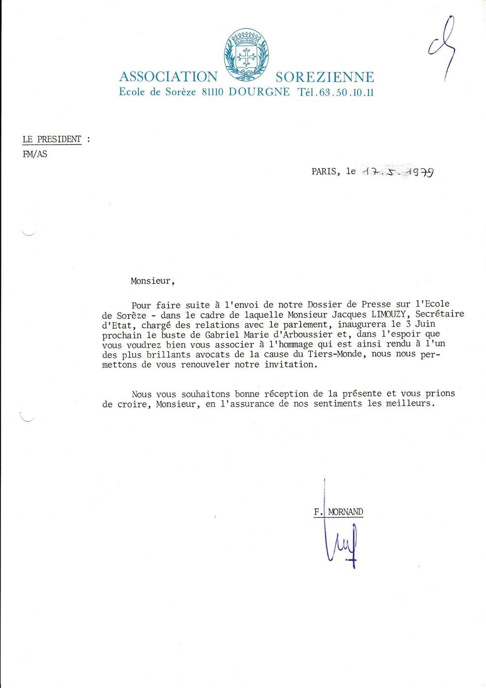 1979, 17 mai Mornand invite à l'inauguration du buste de D'Arboussier