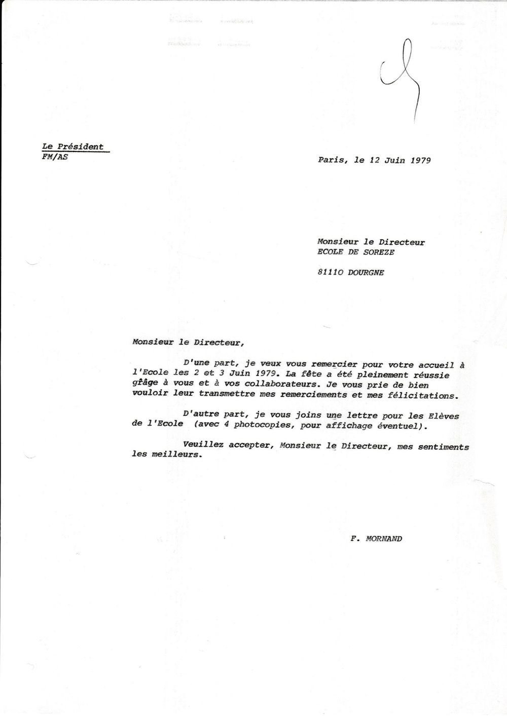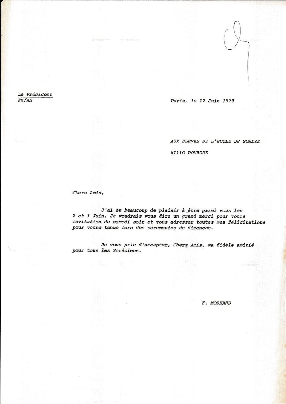 1979, 12 juin, Mornand au directeur et aux élèves