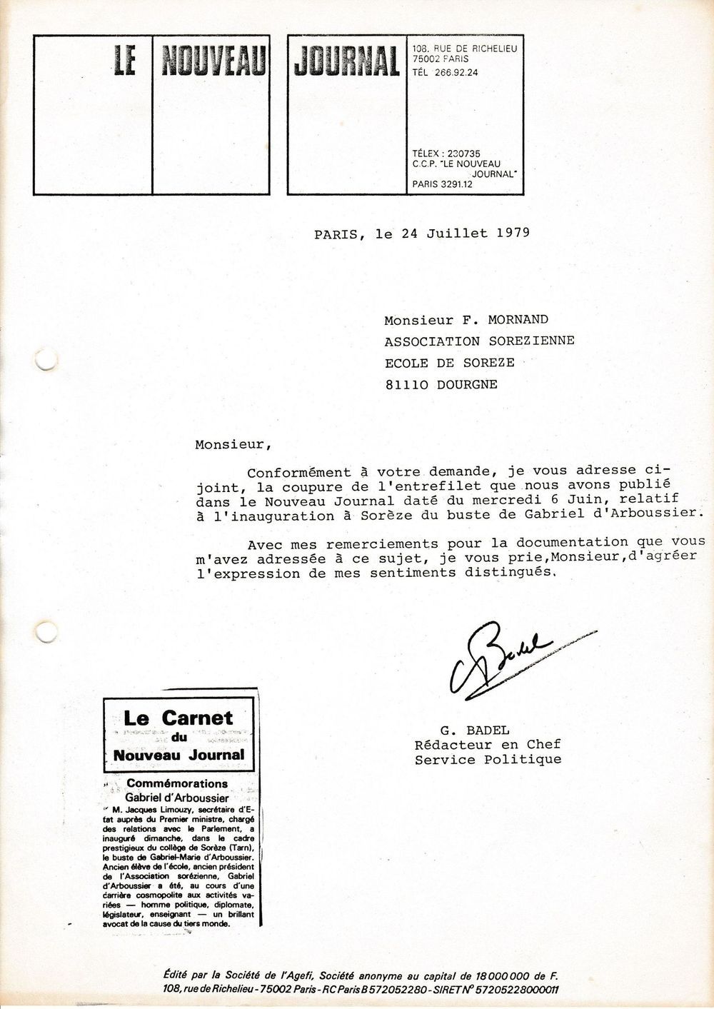 1979, 24 juillet, Le Nouveau Journal à Mornand # D'Arboussier