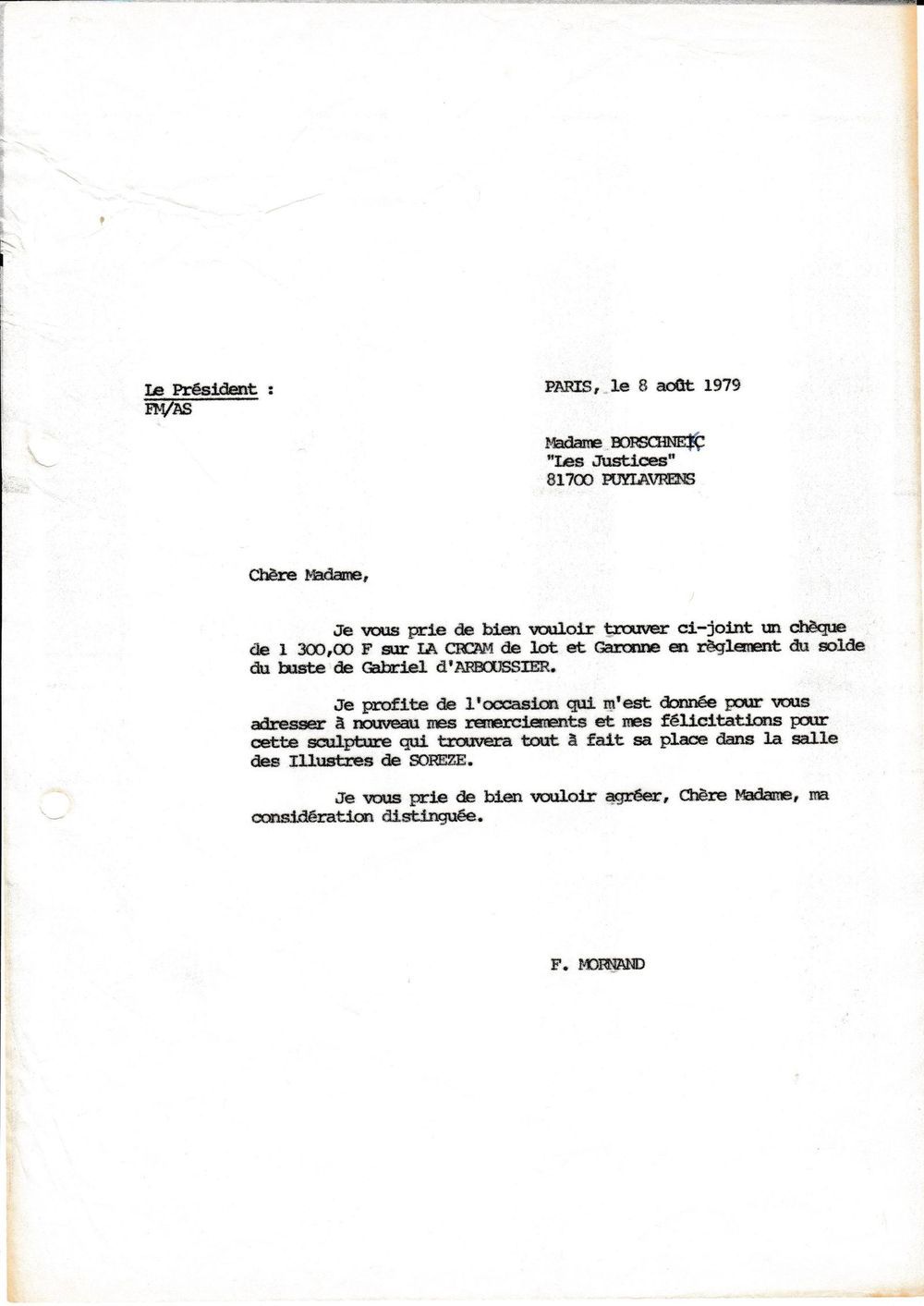 1979, 8 aoû:t, Mormand paie le buste de D'Arboussier