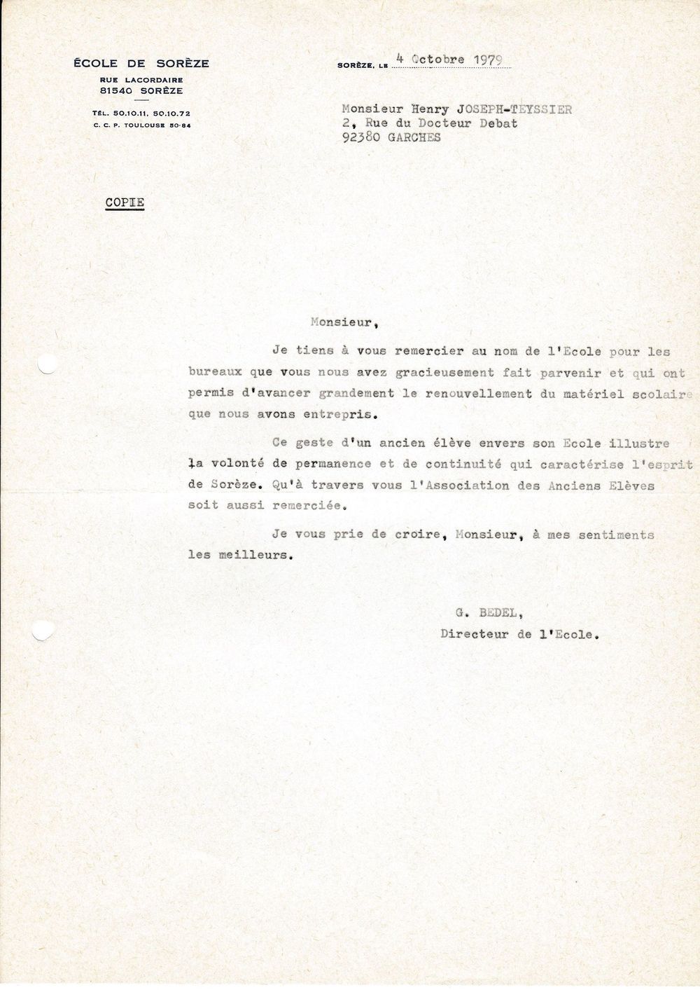 1979, 4 octobre, le directeur de l'École à Joseph-Teyssier (42-46)