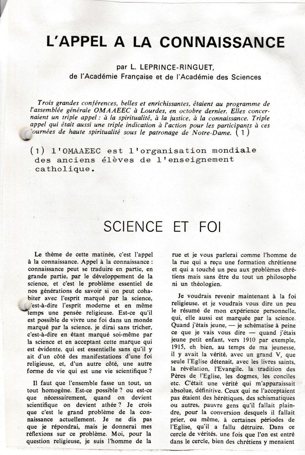1979,l'Évêque d'Evreux et Louis Leprince-Ringuetà propos de l'enseignement catholique
